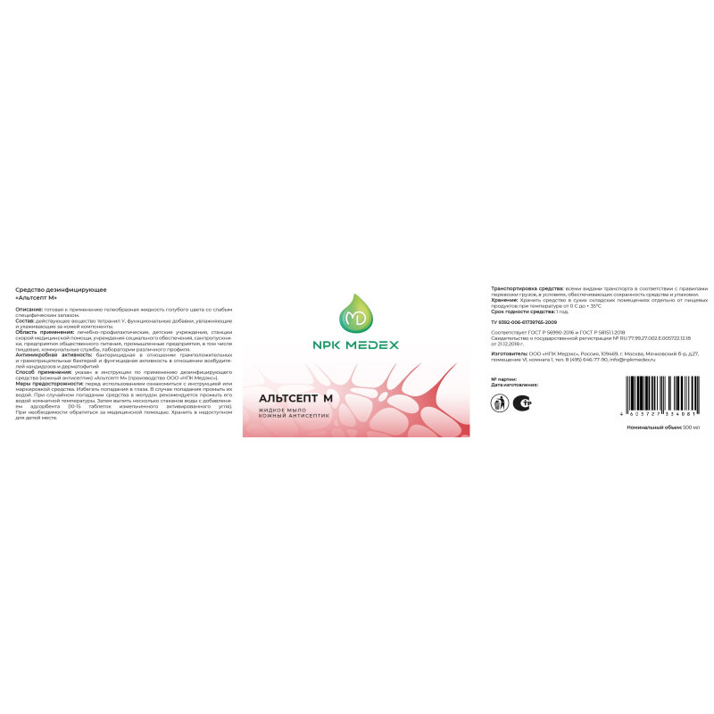 НПК медэкс Средство дезинфицирующее мыло Альтсепт-М, 1000 мл, тип крышки: винтовая