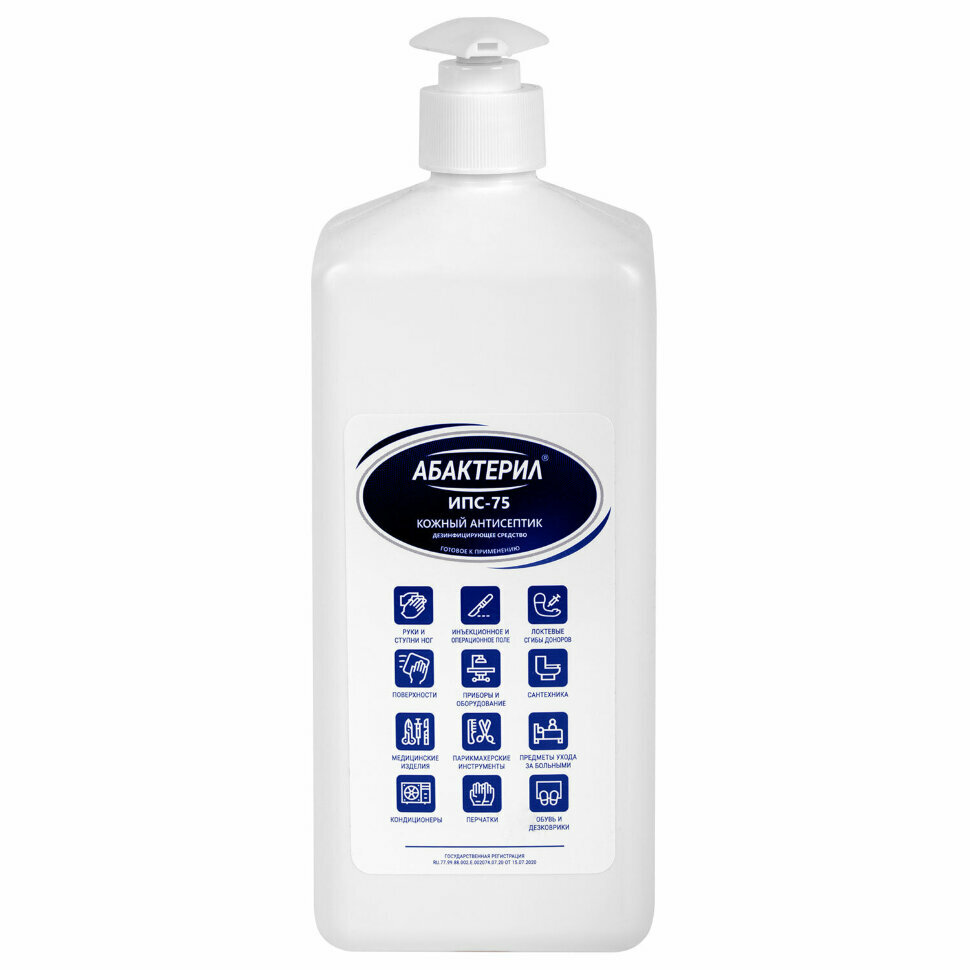 20 шт. Кожный антисептик с вирулицидной активностью ГОСТ 12.1.007-76 Абактерил ИПС-75 1 л флакон с дозатором
