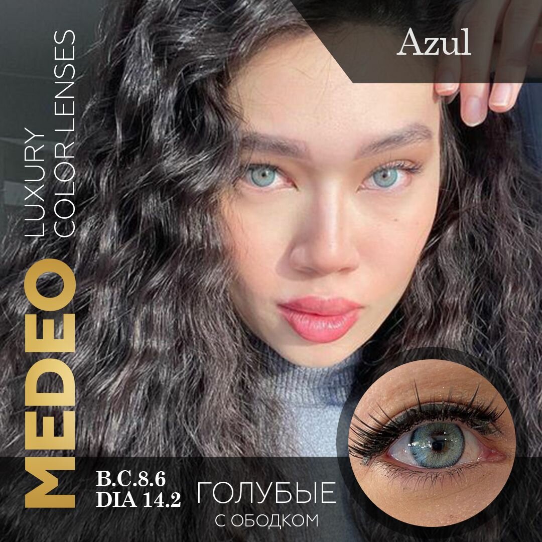 Купить Цветные контактные линзы Medeo Azul 3 месяца, -2.5 / 14.2 / 8.6, голубой, с ободком 2 шт.