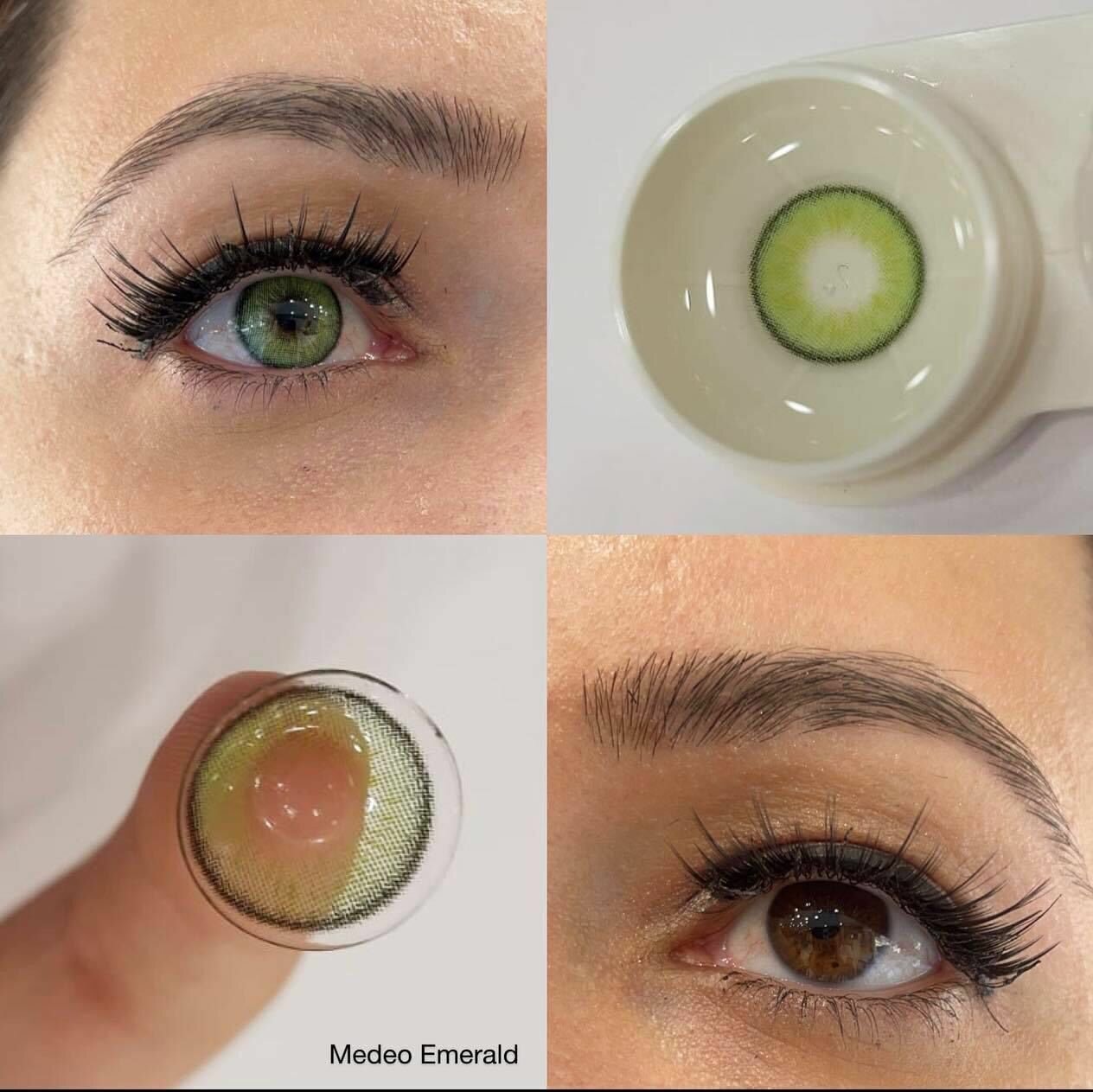 Купить Цветные контактные линзы Medeo Emerald 3 месяца, -2.5 / 14.2 / 8.6, зеленый, оливковый, с ободком 2 шт.