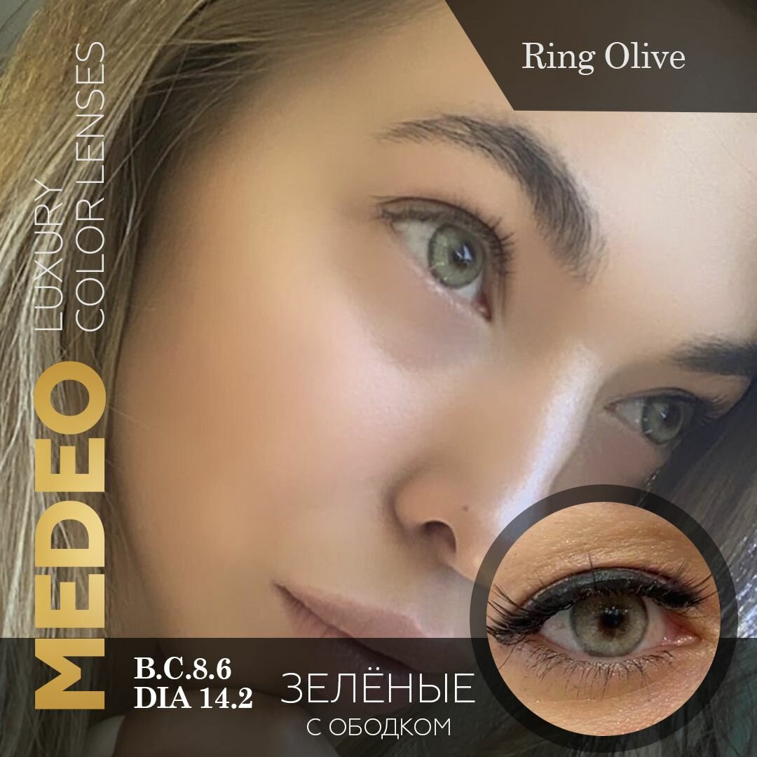 Цветные контактные линзы Medeo Ring Olive 3 месяца, 0.00 / 14.2 / 8.6, зеленый, оливковый, с ободком 2 шт.
