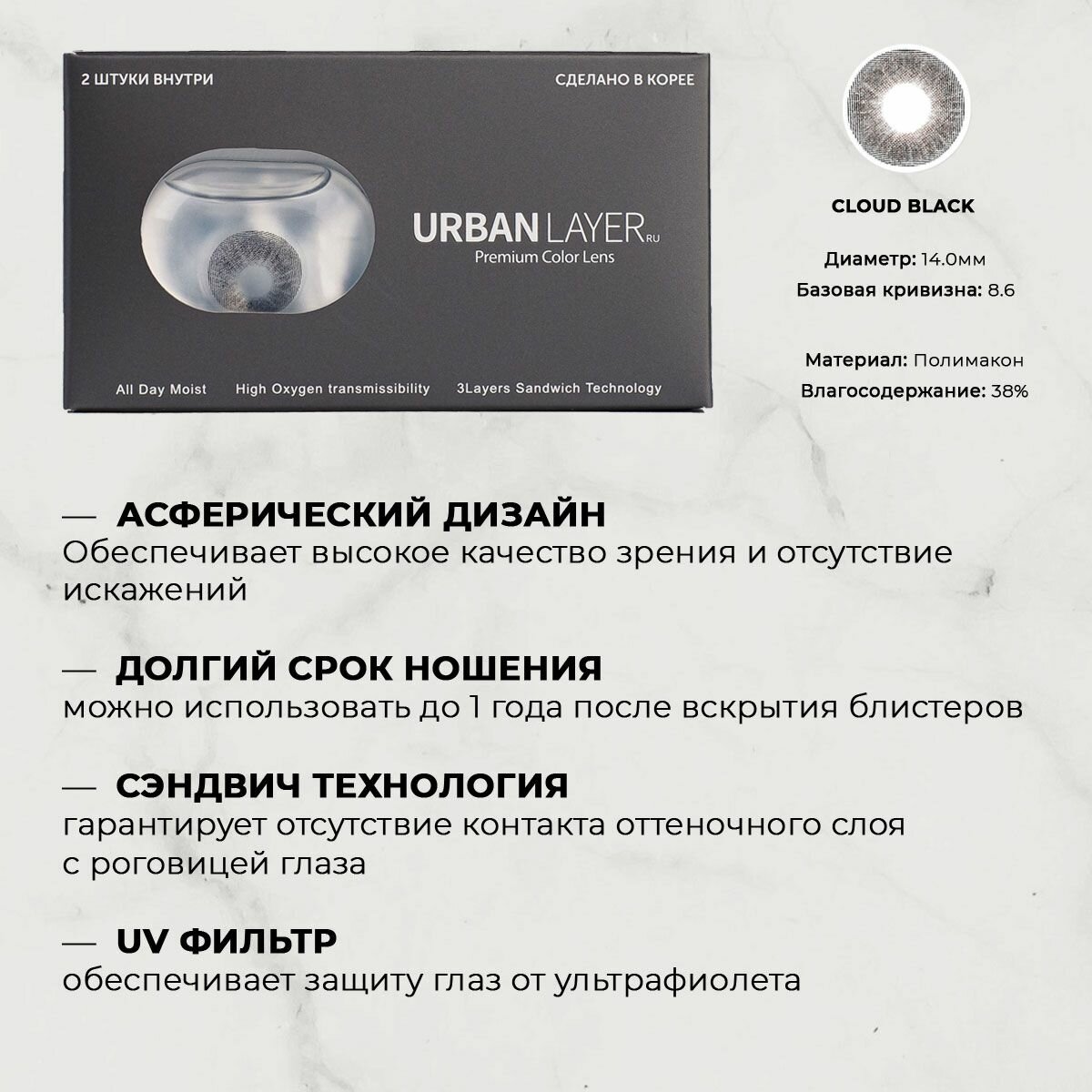 Цветные контактные линзы URBAN LAYER ru Cloud Black 12 месяцев, -3.75 / 14.0 / 8.6, Черный, 2 шт.