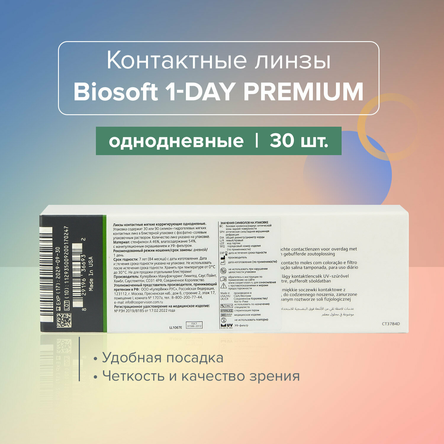 Контактные линзы Biosoft 1 Day Premium однодневные Sph.+01.00/14,2/8.4, 30 шт.