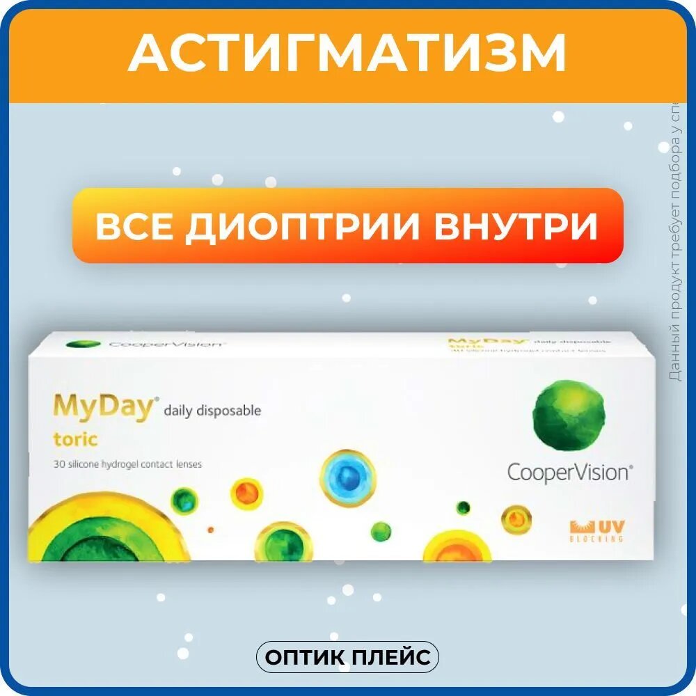 СохранитьCooperVision Астигматические линзы MyDay Daily Disposable Toric (30 линз) +3,50, 8,6, -2,25, 10 интересное: