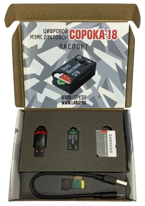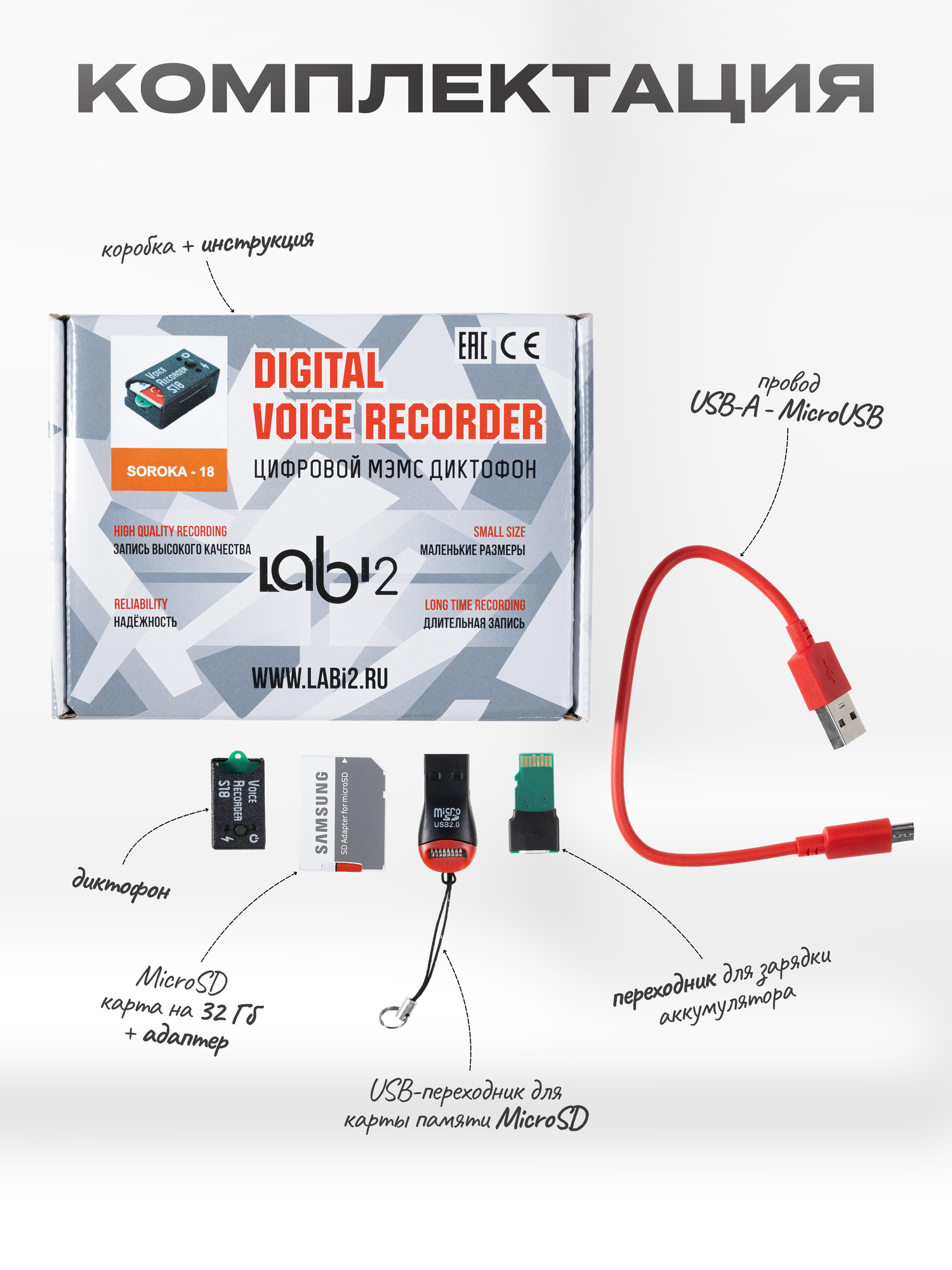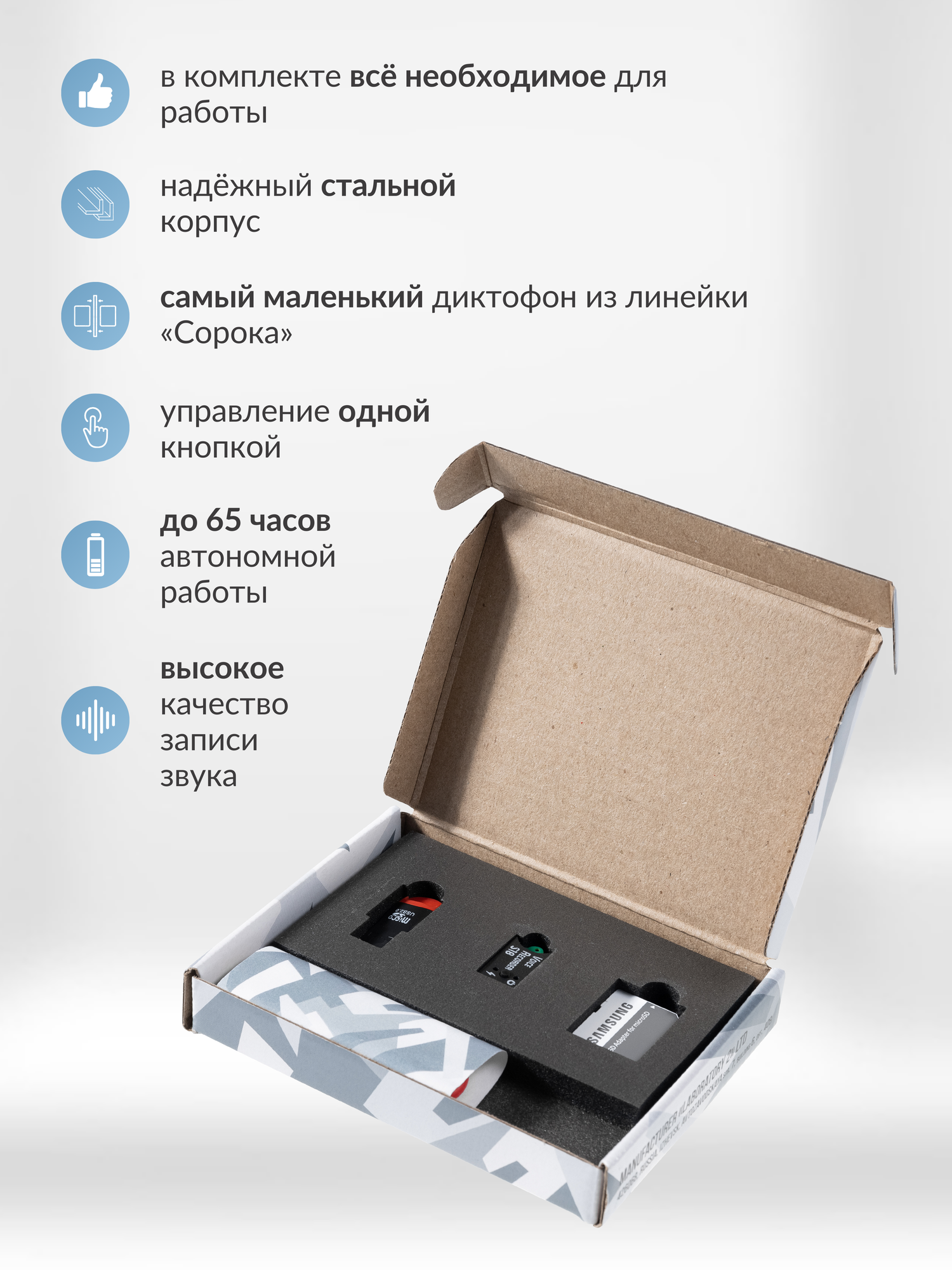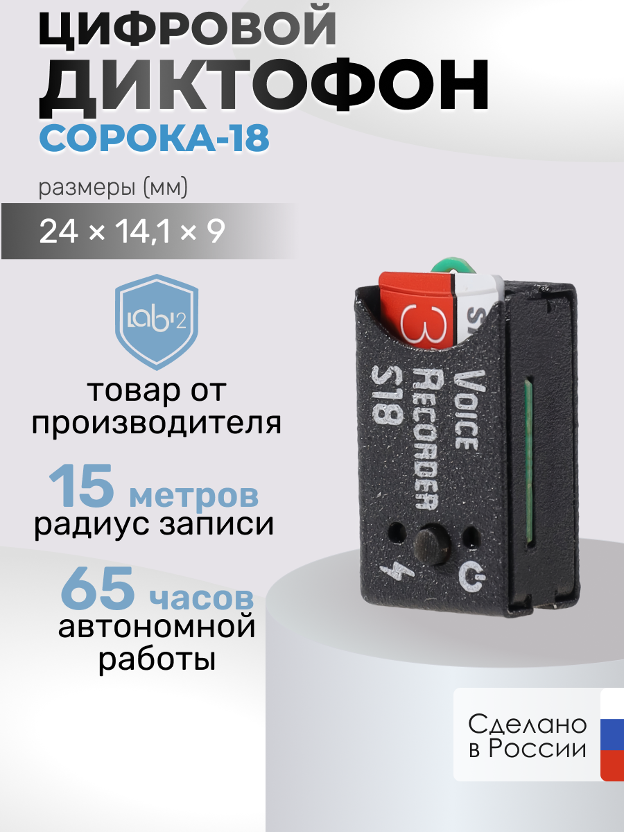 Диктофон Сорока 18/ Миниатюрный диктофон Soroka 18/ датчик звука / 5 дней записи