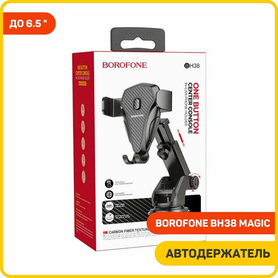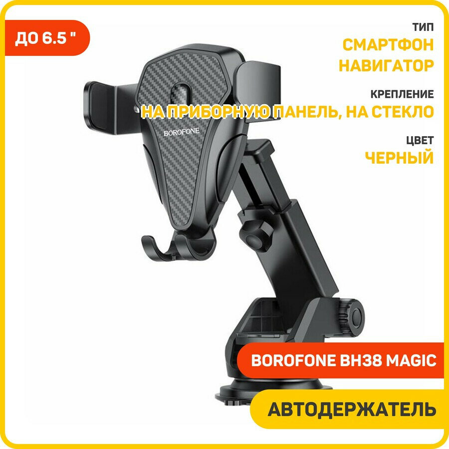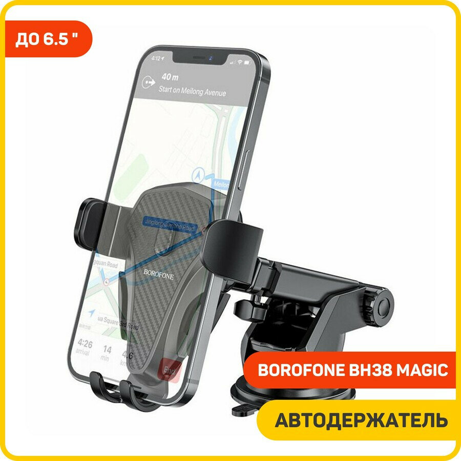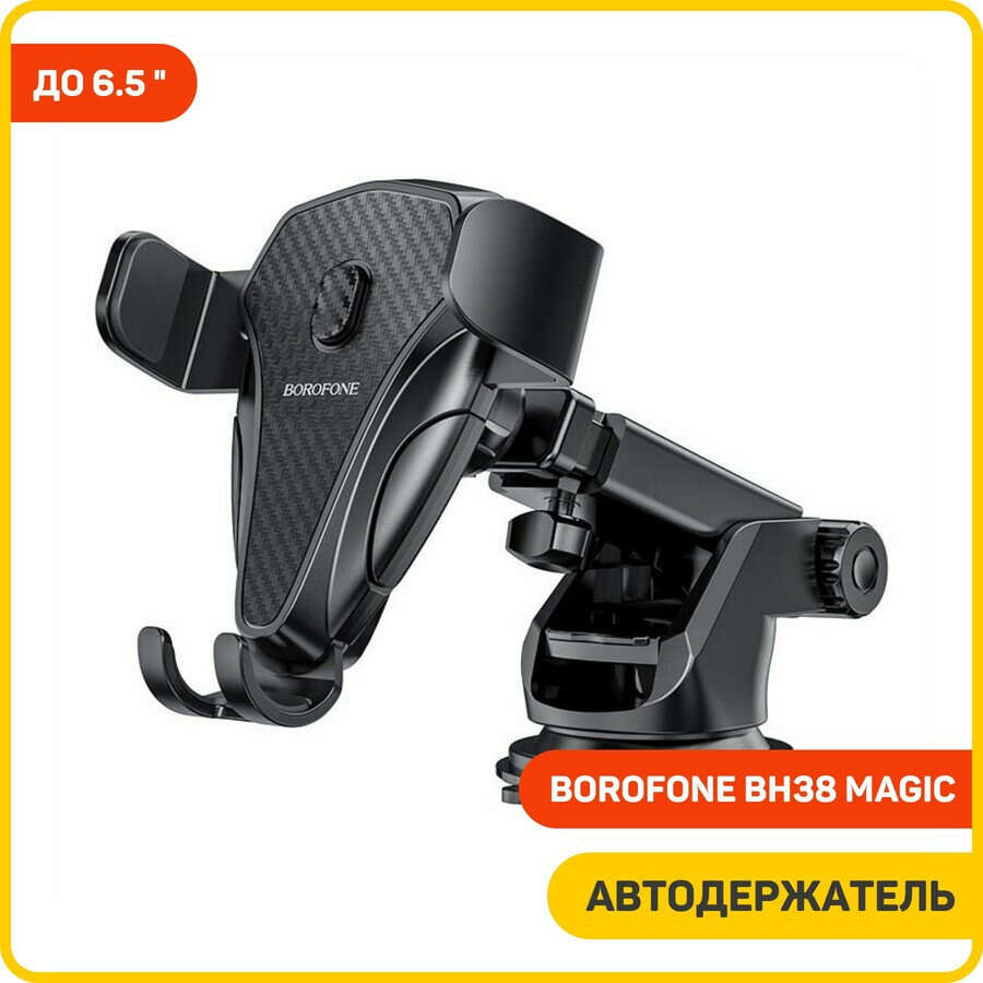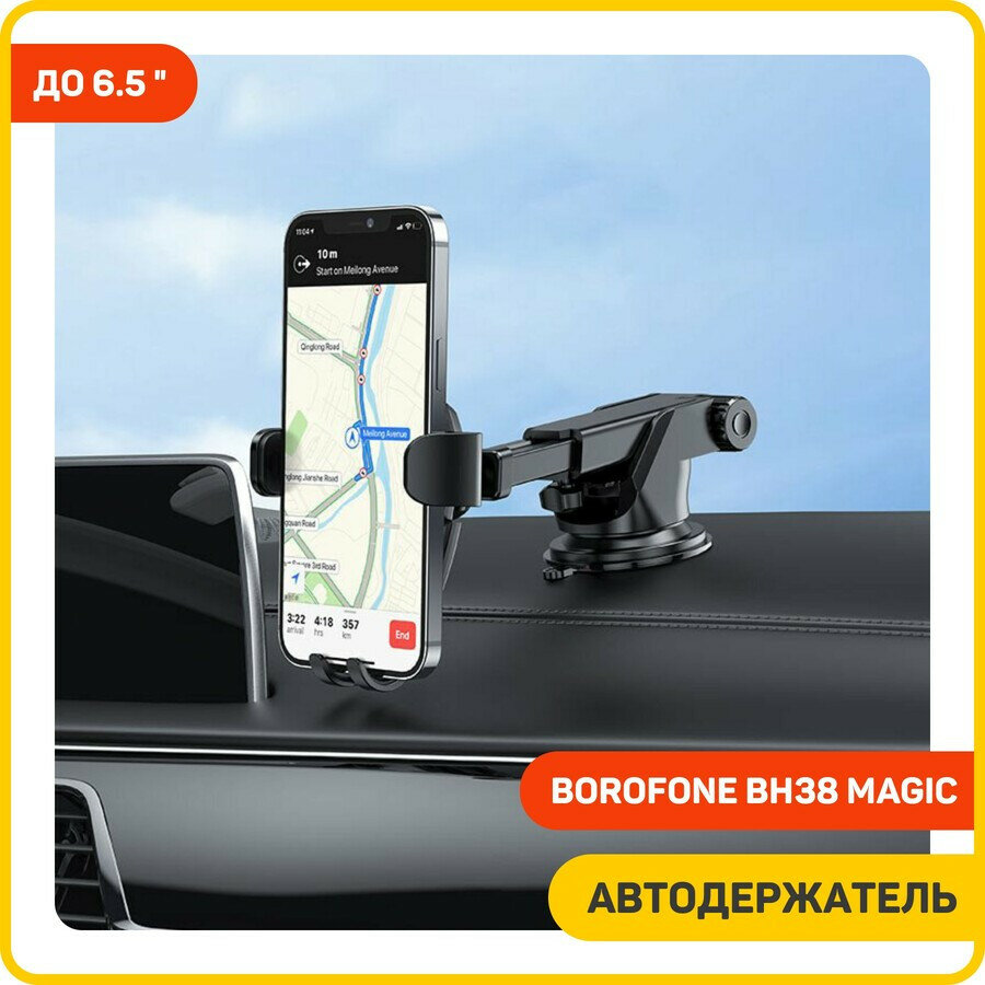 Автомобильный держатель BOROFONE BH38 Magic, зажимной, на приборная панель/лобовое стекло, черный