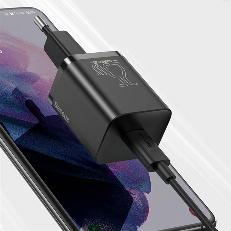 Сетевое зарядное устройство/Быстрая зарядка Baseus Super Si Quick Charger Type-C 25W (EU) Sets Black (With Mini White Cable Type-C to Type-C 3A 1m Black) TZCCSUP-L01