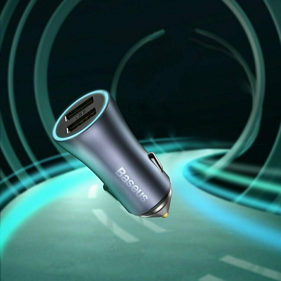 Автомобильное зарядное устройство BASEUS Golden Contactor Pro Dual, 2USB, 5A, темно-серый