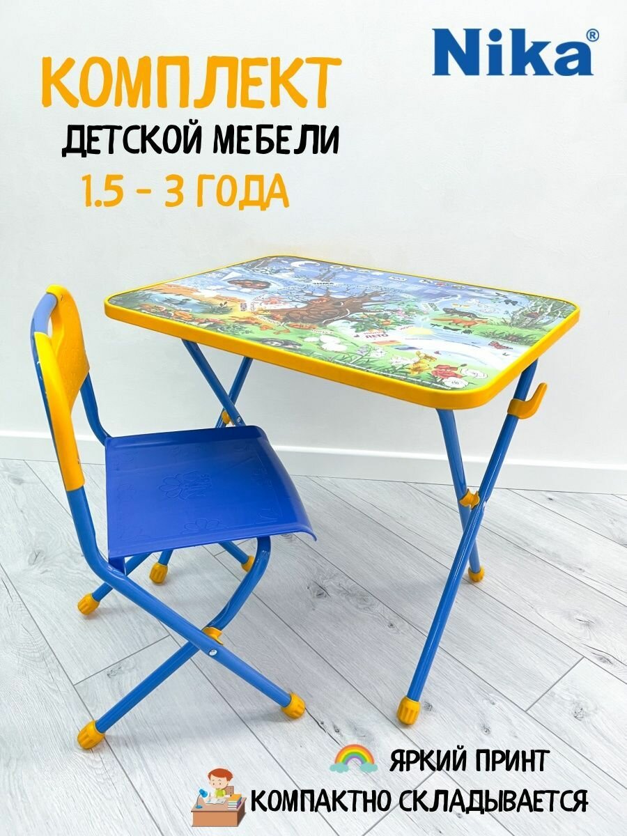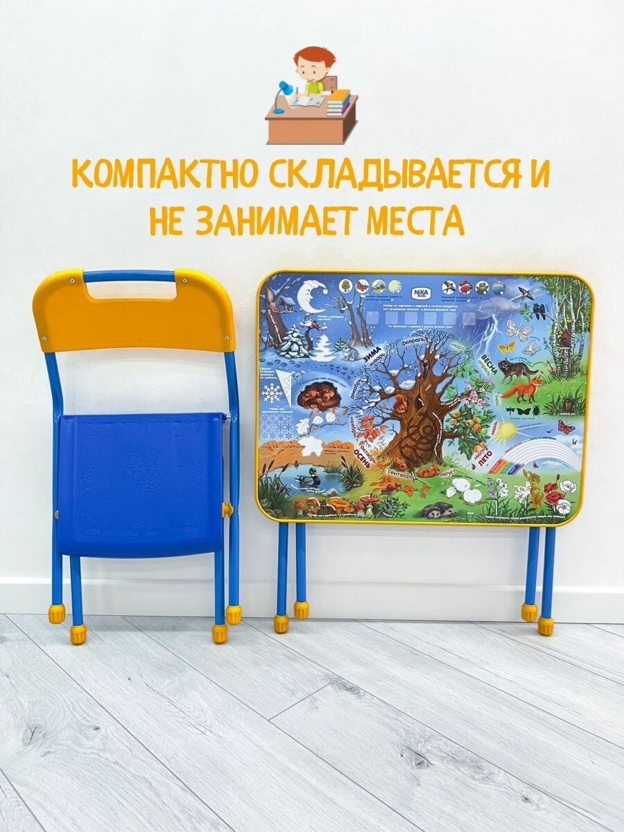 Комплект Nika стол + стул Познайка Хочу все знать (КП/7) 60x45 см синий/желтый