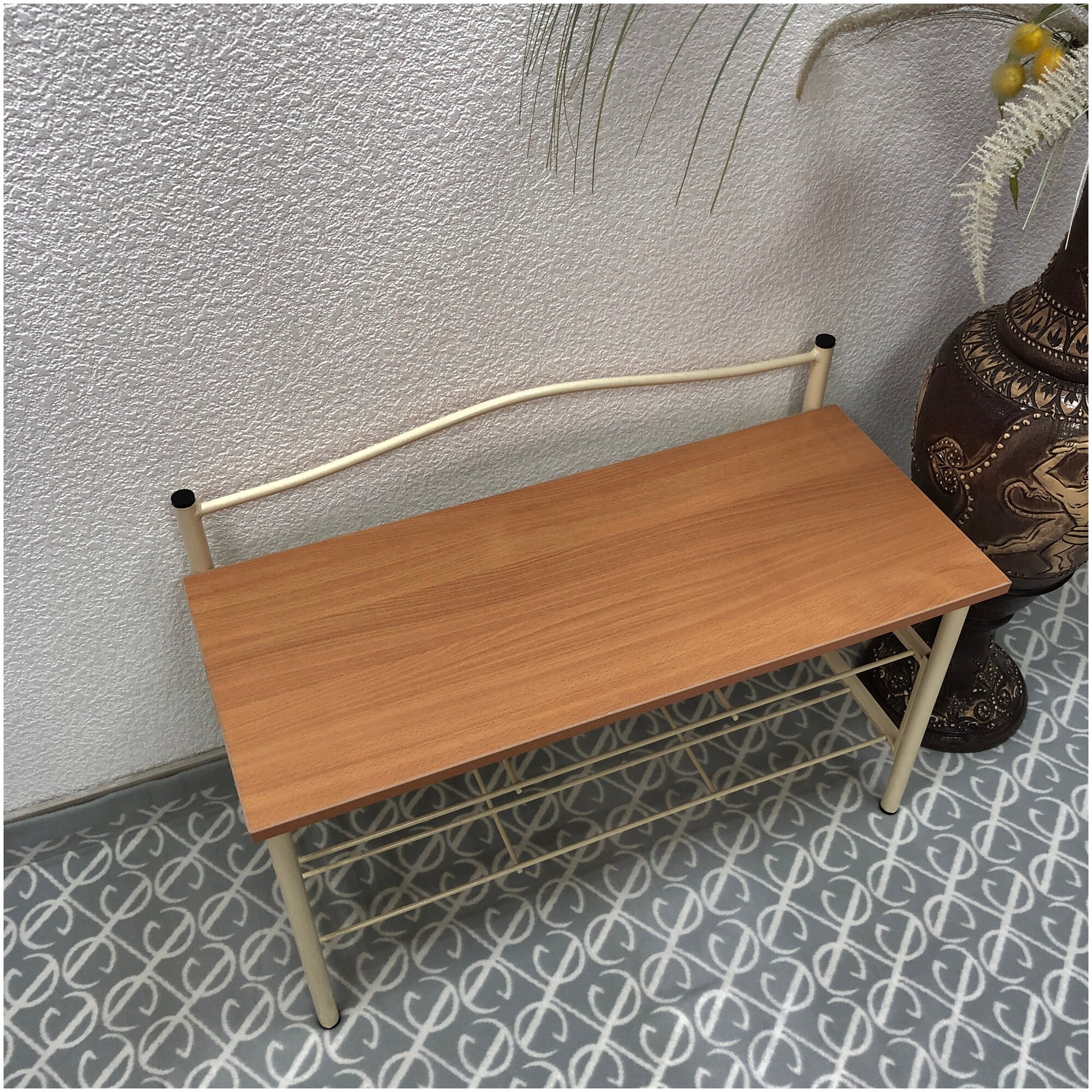 Обувница, Банкетка, Обувница в прихожую, Обувница с сиденьем Поллет жесткая, бежевый, белый бук, металл 77х32х42