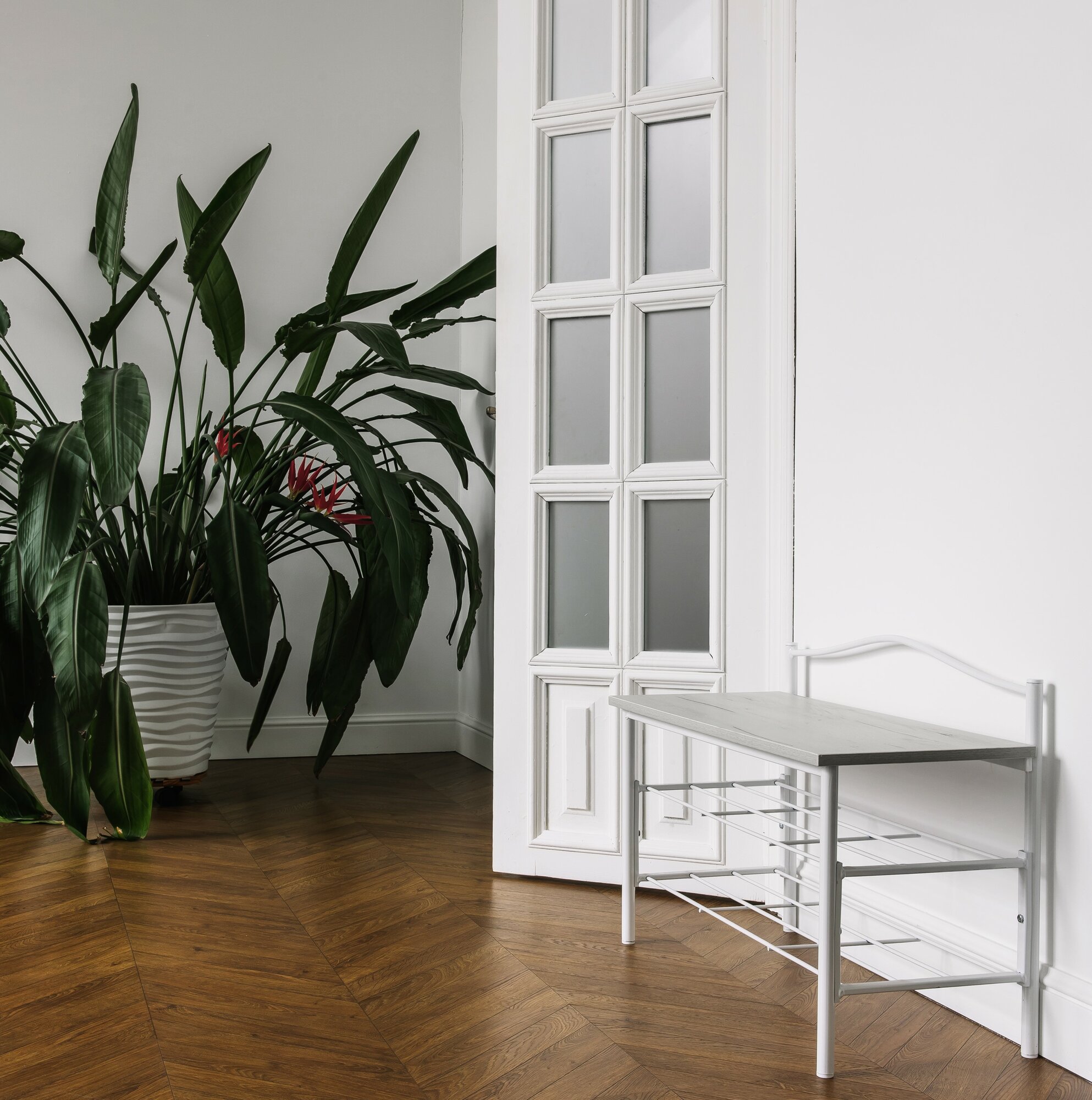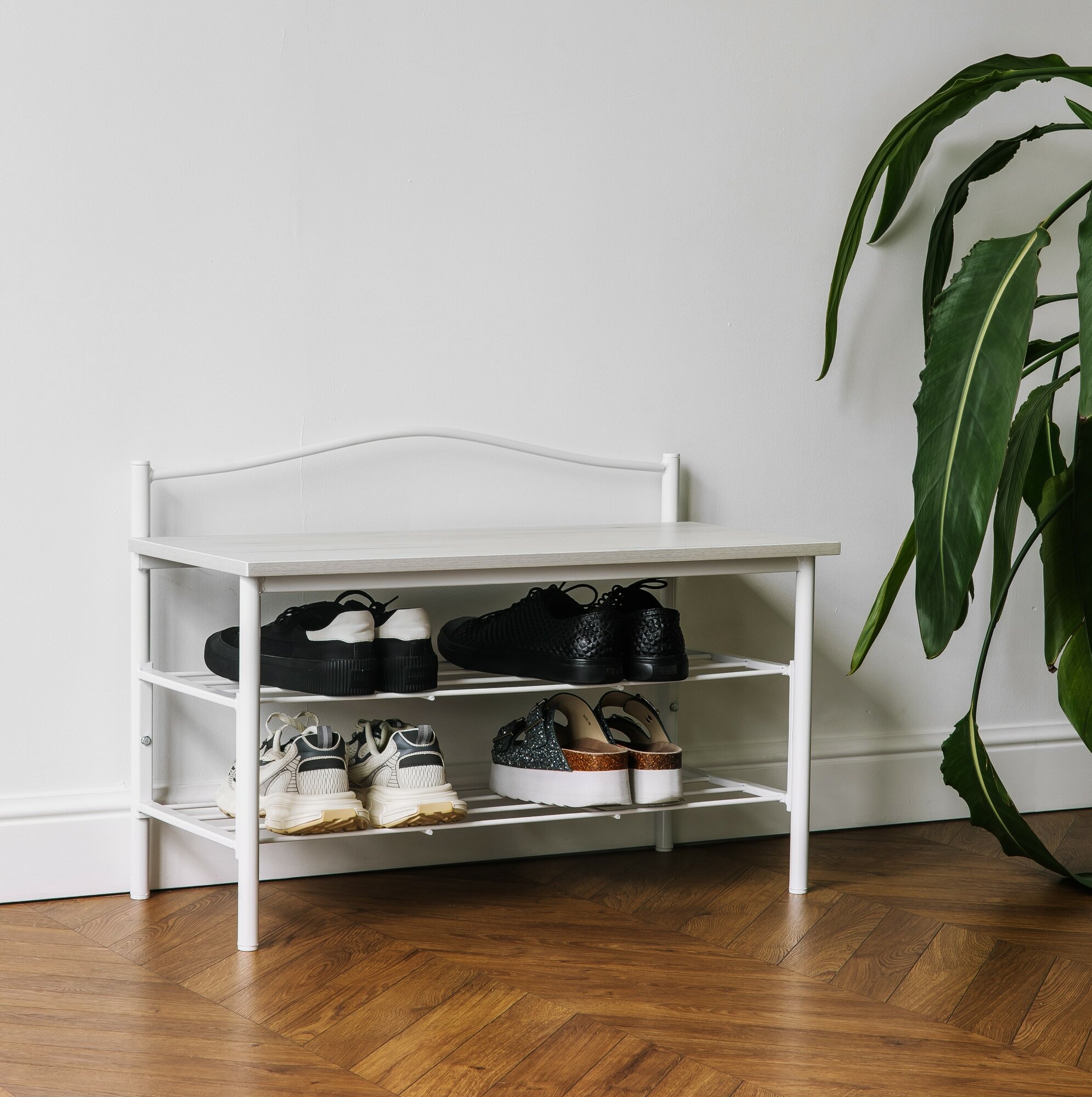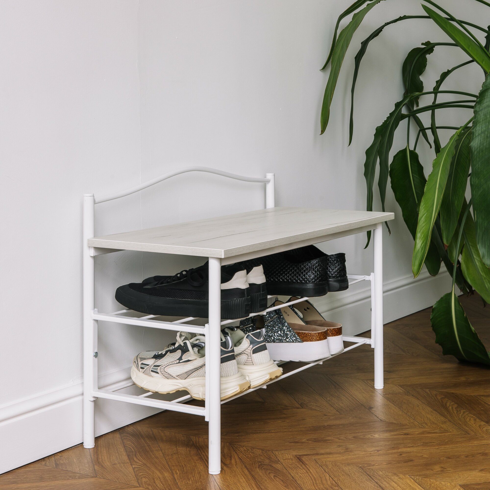 Обувница, Банкетка, Обувница в прихожую, Обувница с сиденьем Поллет жесткая, бежевый, белый бук, металл 77х32х42