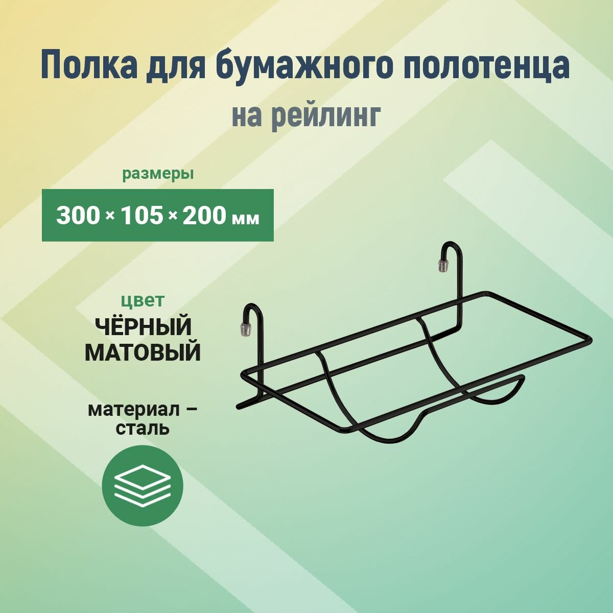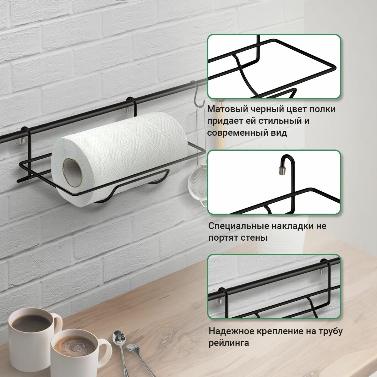 Полка на рейлинг для бумажного полотенца чёрная Lemax YJ-G217 BL