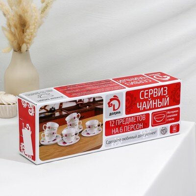 Доляна Сервиз чайный Доляна «Дива», 12 предметов: 6 чашек 190 мл, 6 блюдец, опаловое стекло