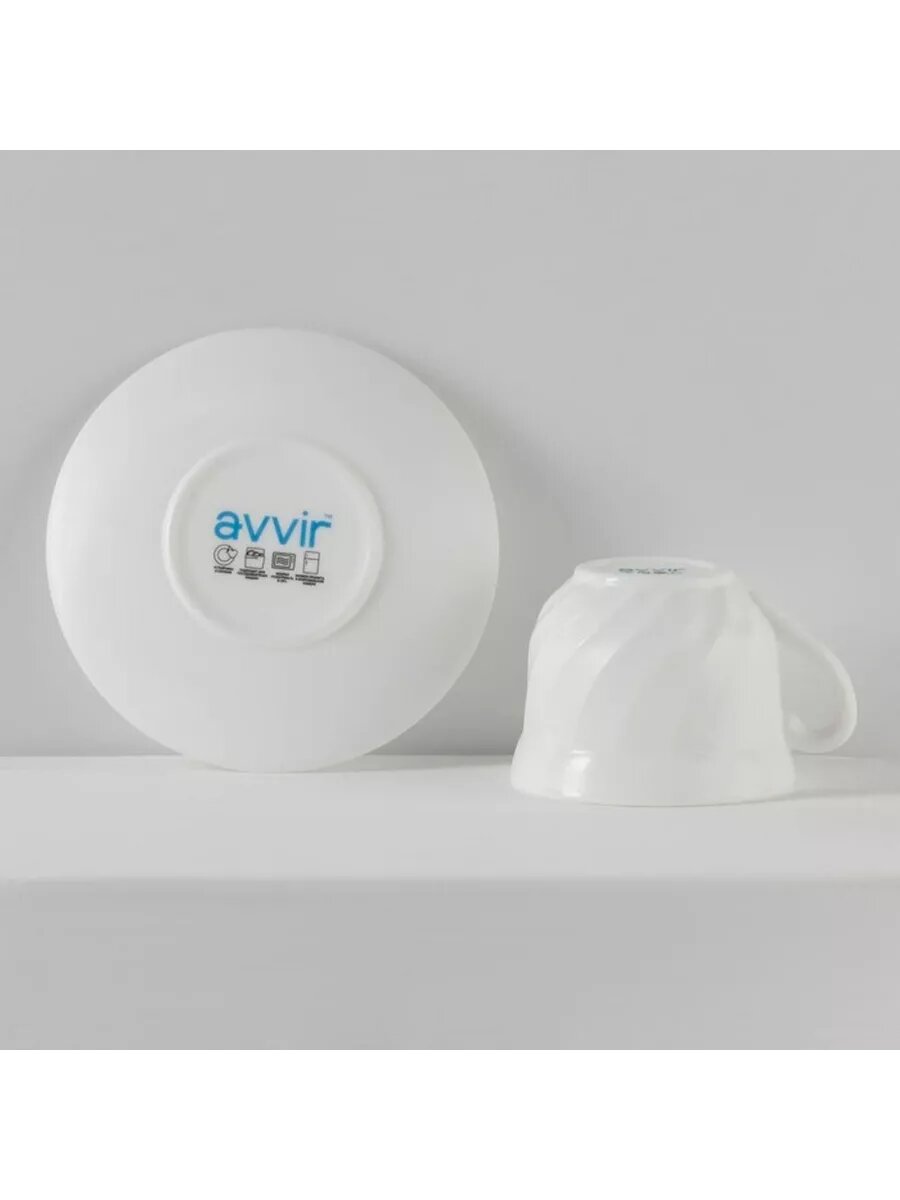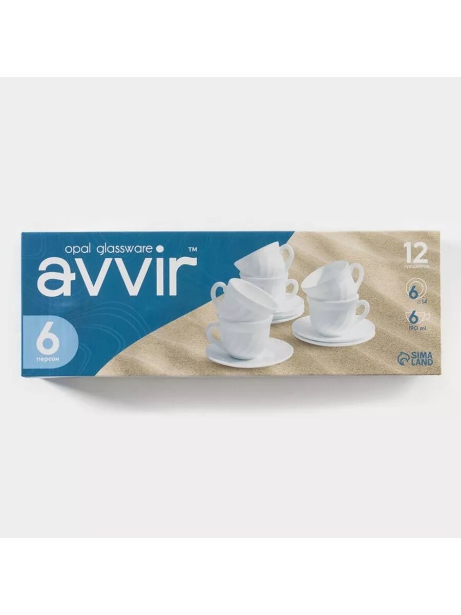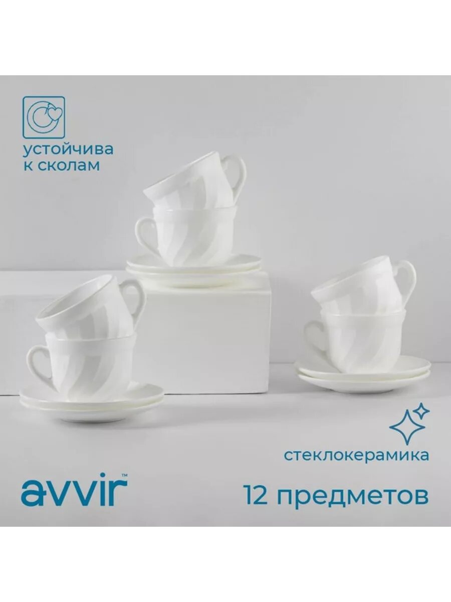 Купить Сервиз чайный Avvir «Дива», 12 предметов: 6 чашек 190 мл, 6 блюдец, стеклокерамика