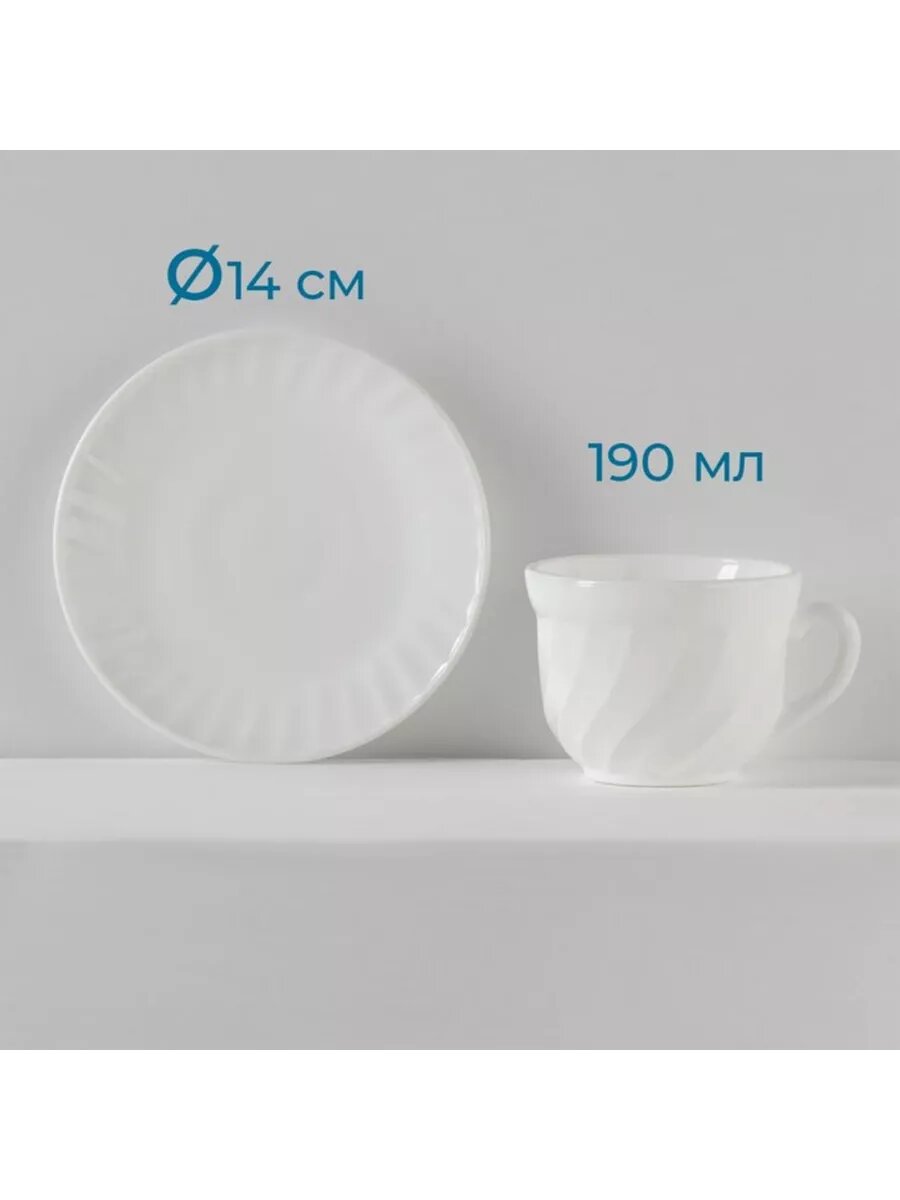 Сервиз чайный Доляна «Дива», 12 предметов: 6 чашек 190 мл, 6 блюдец, опаловое стекло