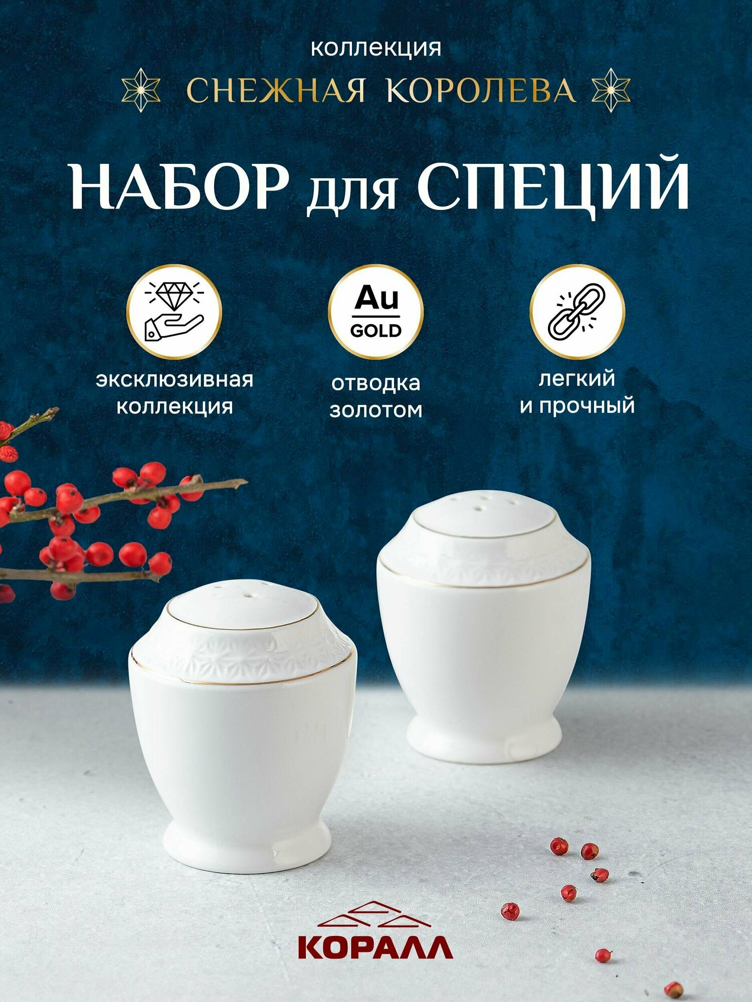 Специи набор CS681507-A коралл "Снежная Королева" 2пр. керам.