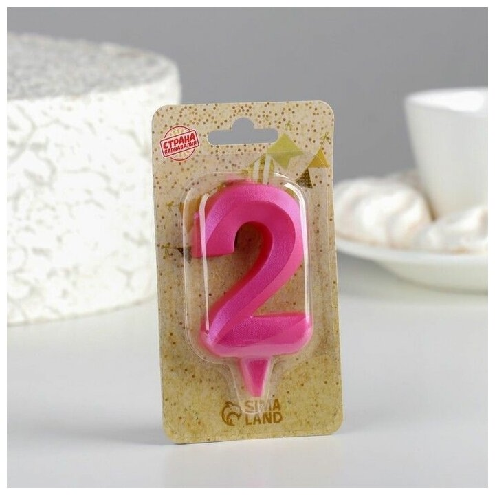 Купить Свеча в торт "Грань", цифра "2", розовый металлик, 6,5 см