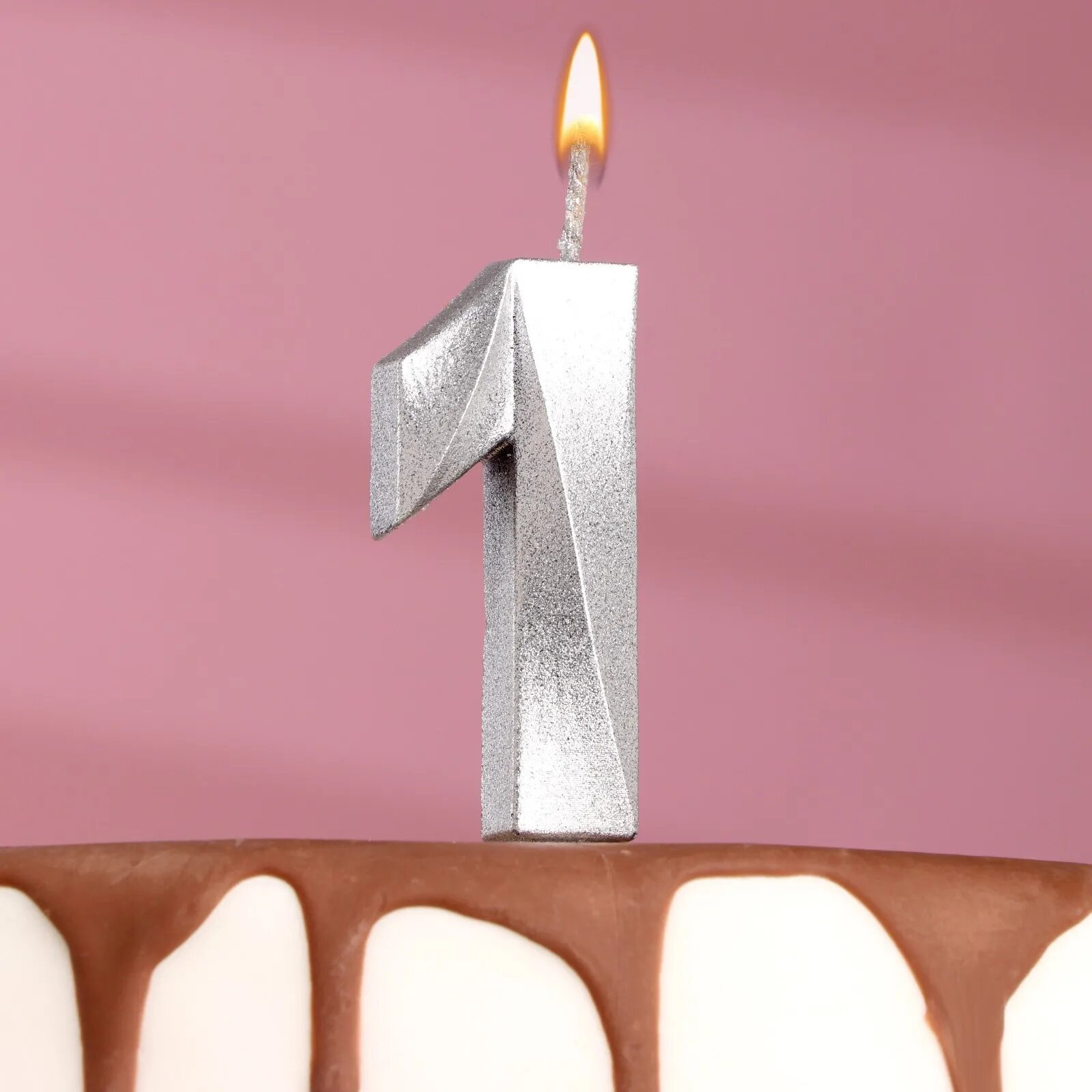 Купить Свеча в торт "Грань", цифра "1", серебряный металлик, 7.8 см
