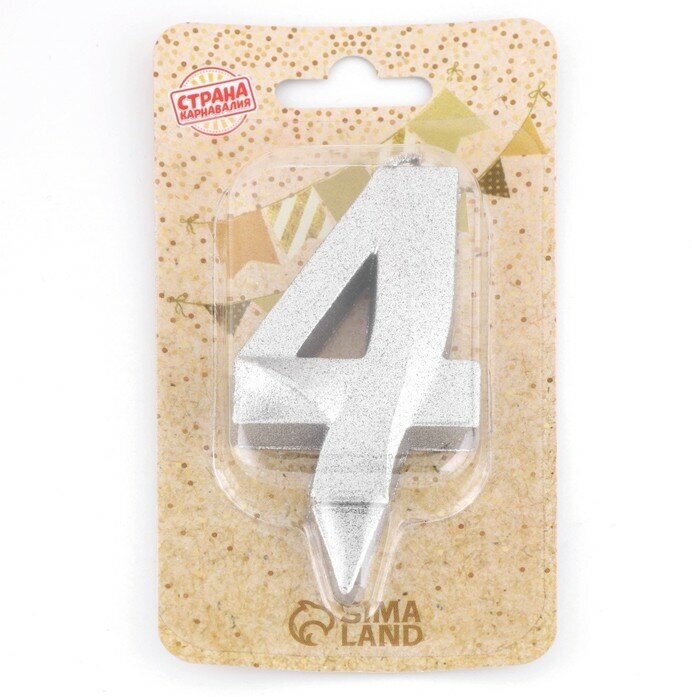 Купить Свеча в торт Грань, цифра 4, серебряный металлик, 7.8 см