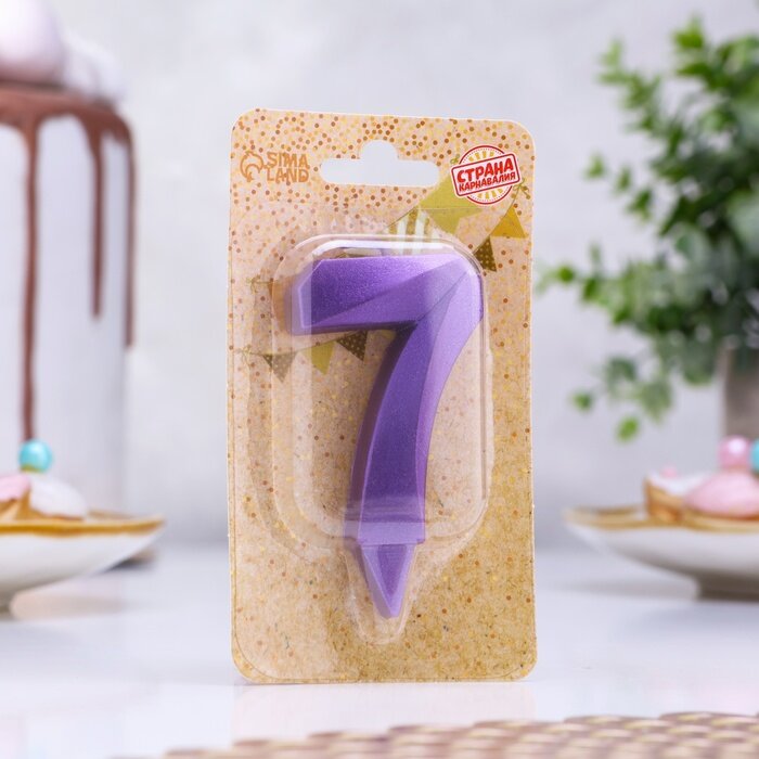 Свеча в торт "Грань", цифра "7", фиолетовый металлик, 7.8 см./В упаковке: 1