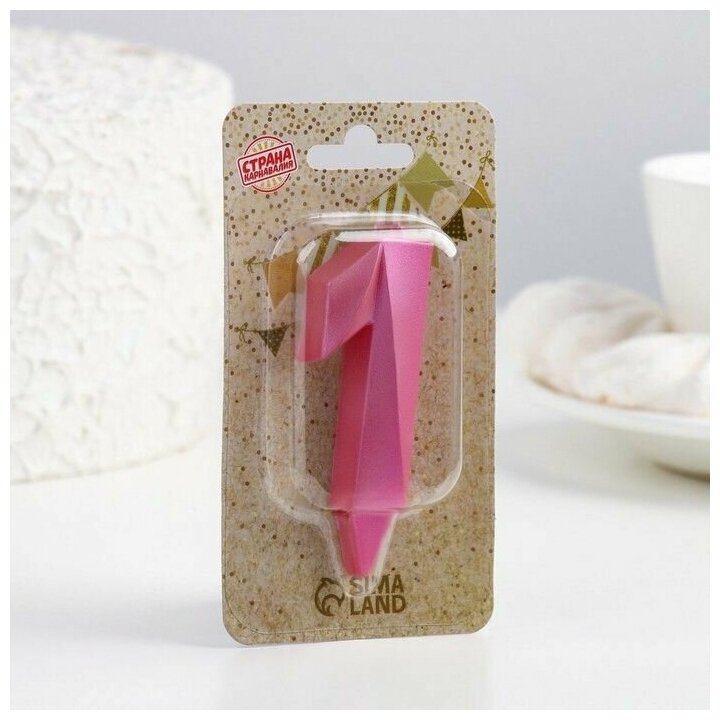 Купить Свеча в торт Грань, цифра 1, розовый металлик, 7.8 см