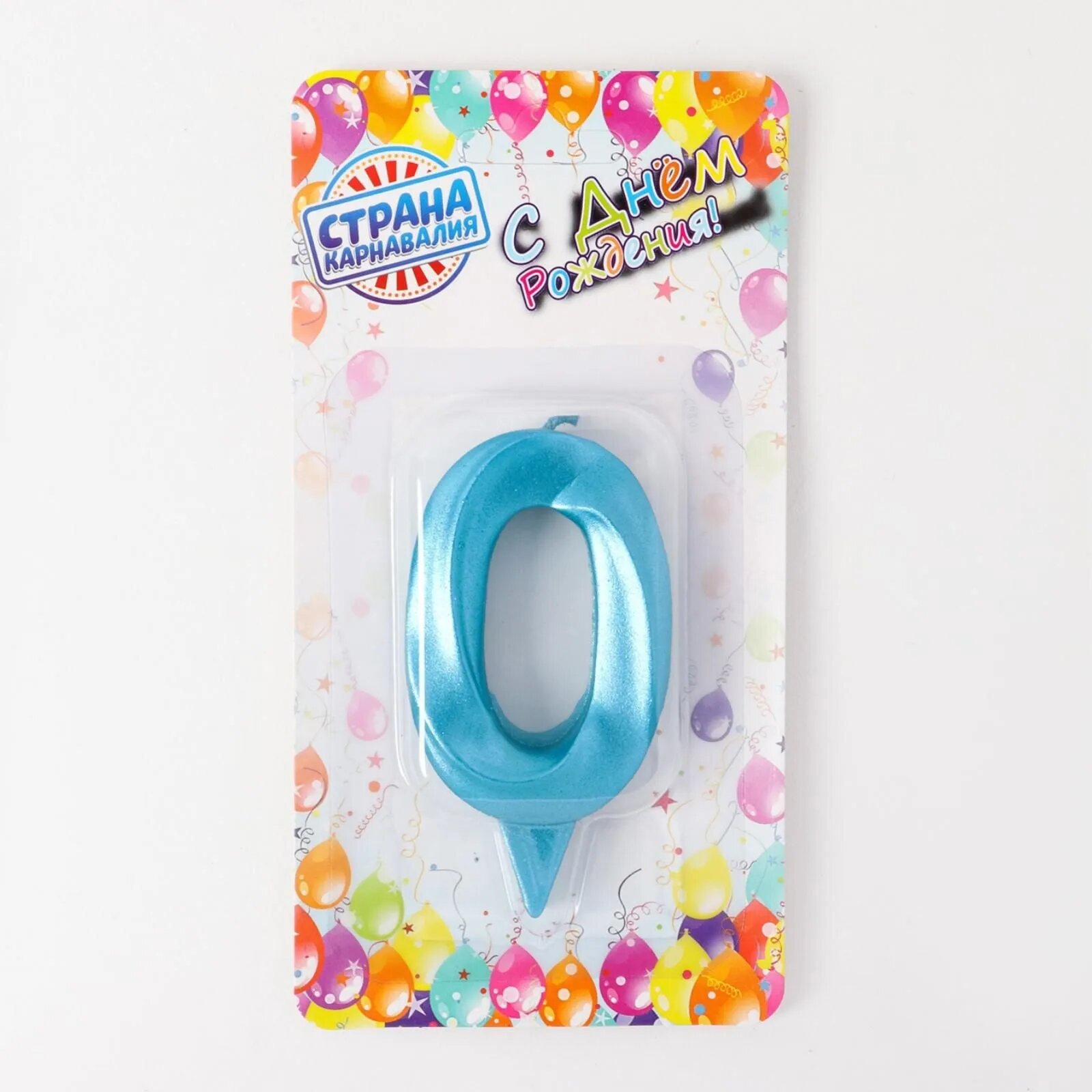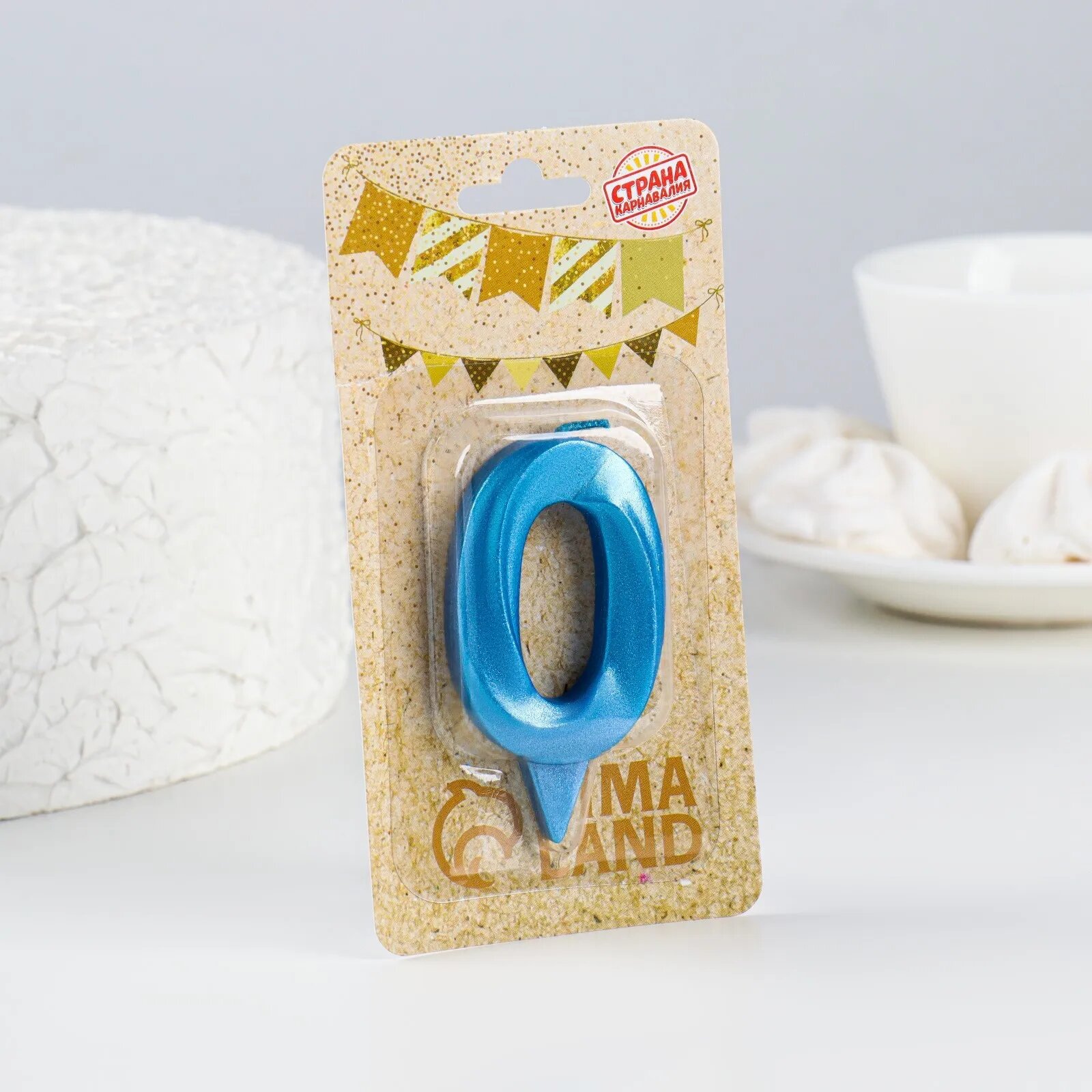 Купить Свеча в торт "Грань", цифра "0", голубой металлик, 7.8 см