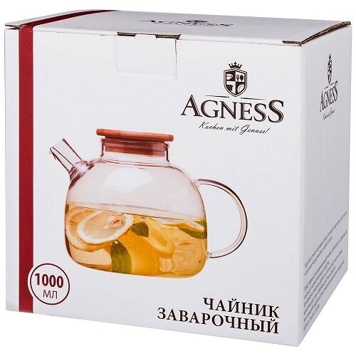 Agness Заварочный чайник с бамбуковой крышкой 250-119, 600 мл, 0.6 л, прозрачный
