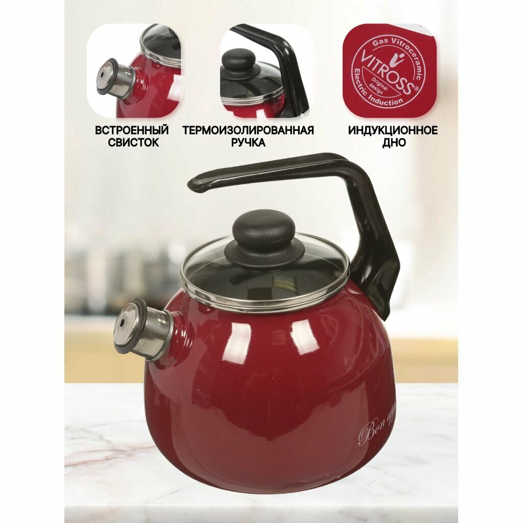 Чайник Vitross Bon Appetit 3л, сталь, эмаль, со свистком, вишневый