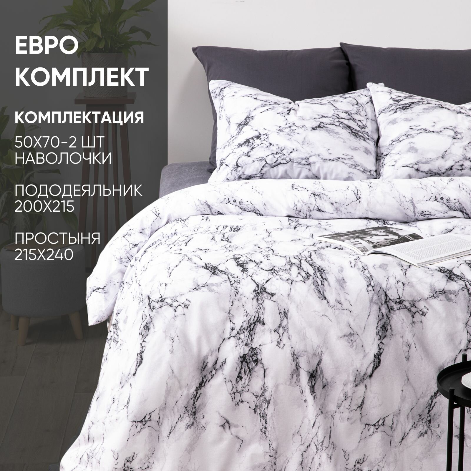 Постельное бельё/евро/комплект/простынь 220х240/пододеяльник 200х220/наволочки 70х70/поплин/Ночь Нежна