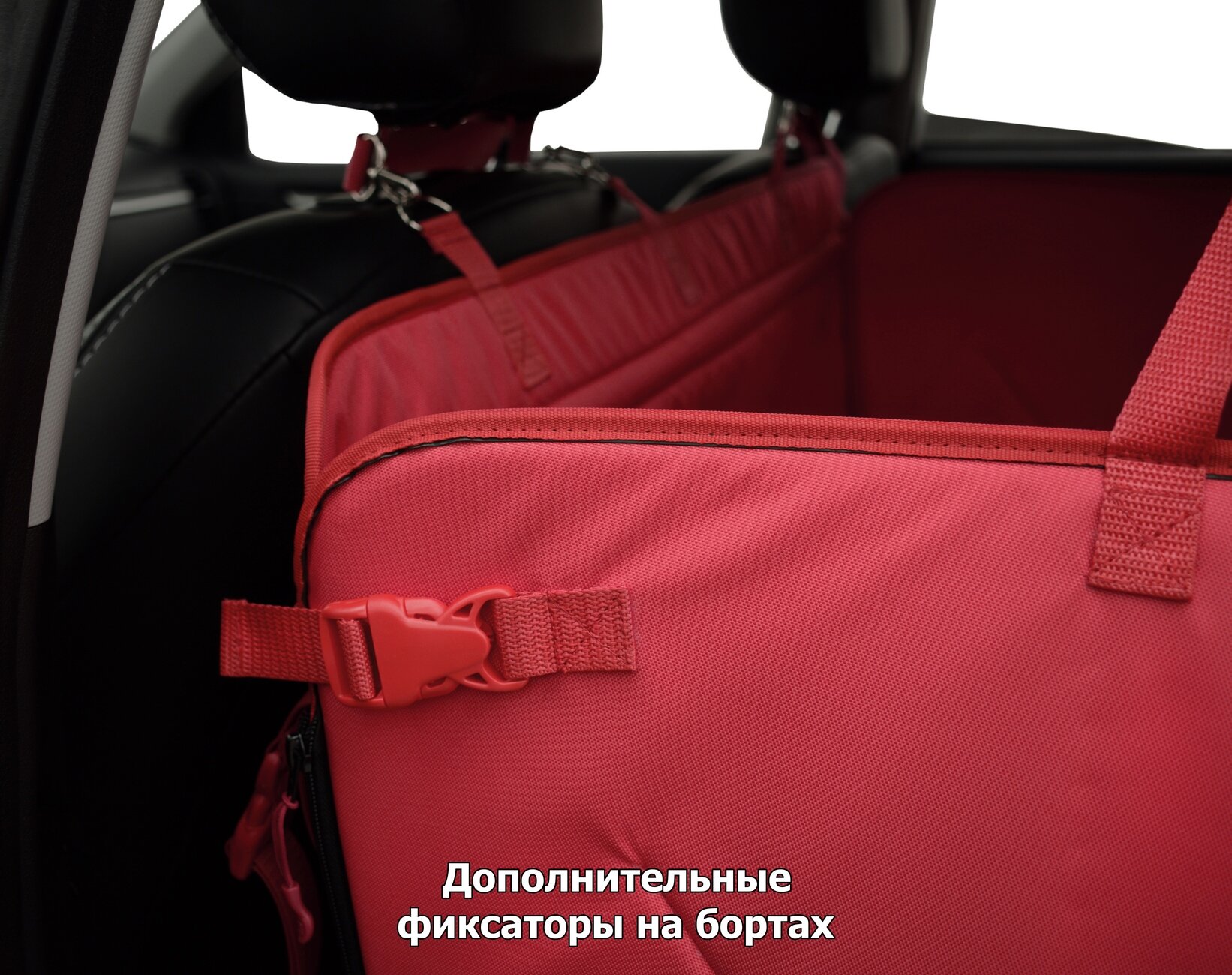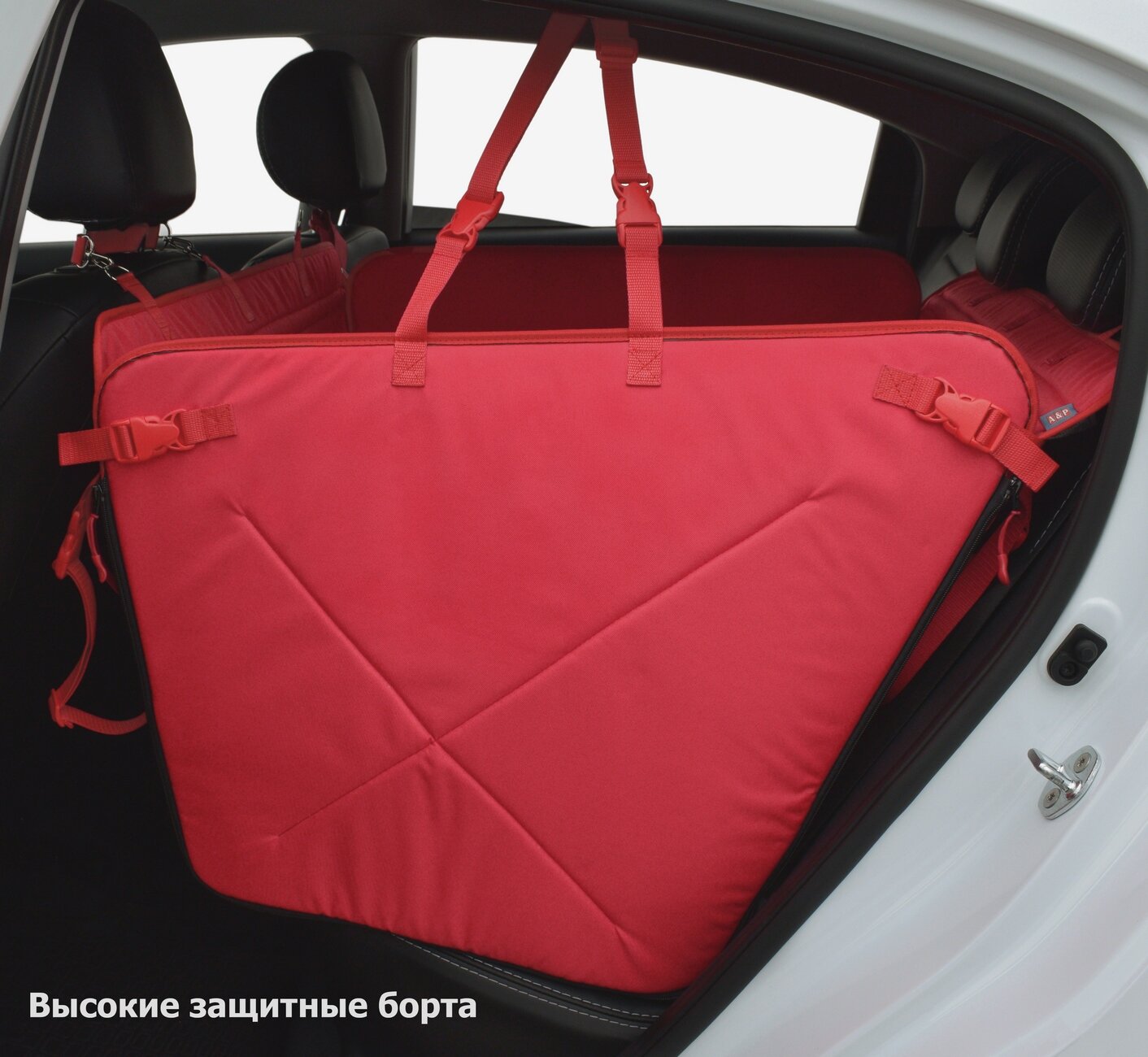 Автогамак для перевозки собак Happy Dog (Хэппи Дог). На 1/3 заднего сиденья. Цвет: красный с черной окантовкой.
