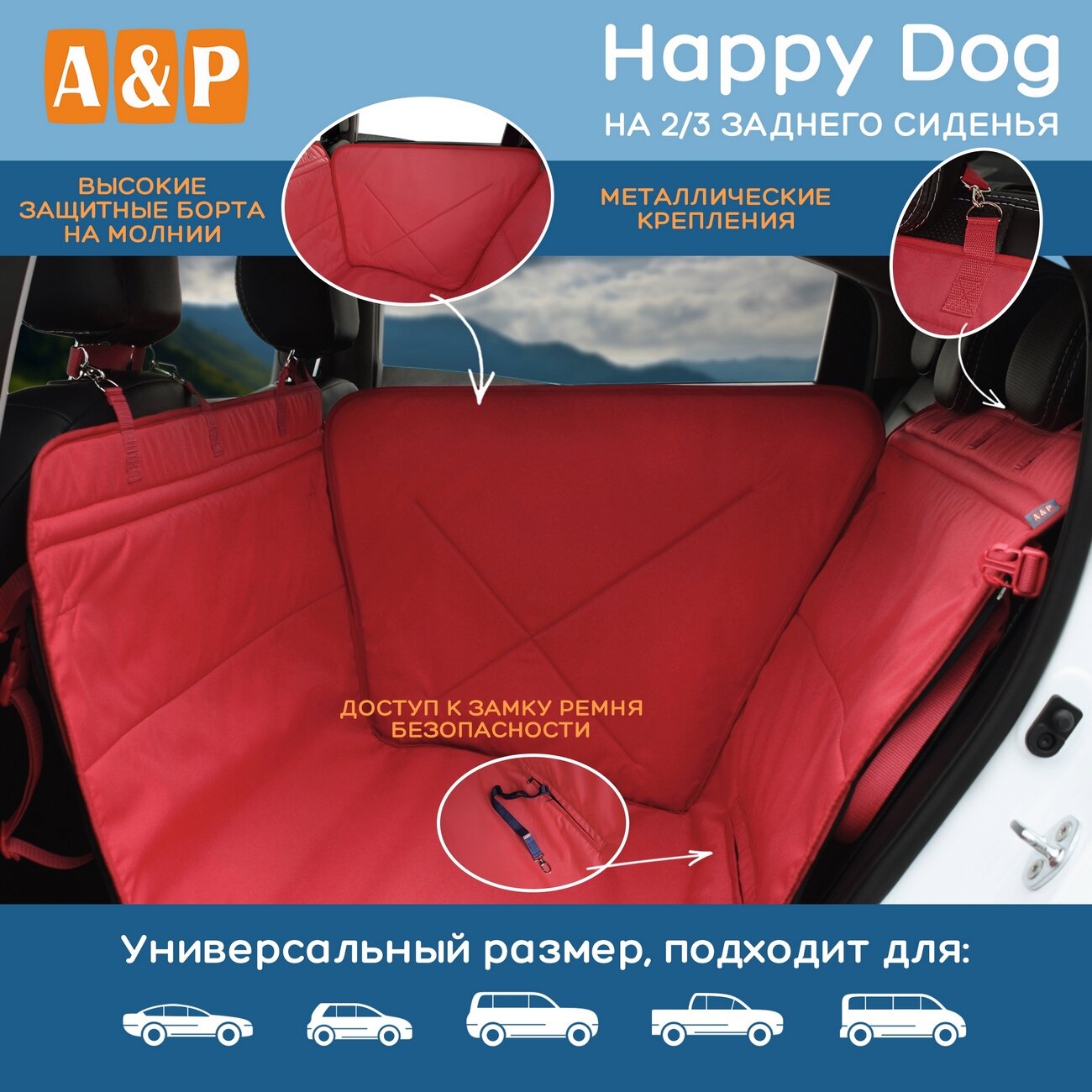 Купить Автогамак Happy Dog (Хэппи Дог). На 2/3 заднего сиденья. Цвет: красный.