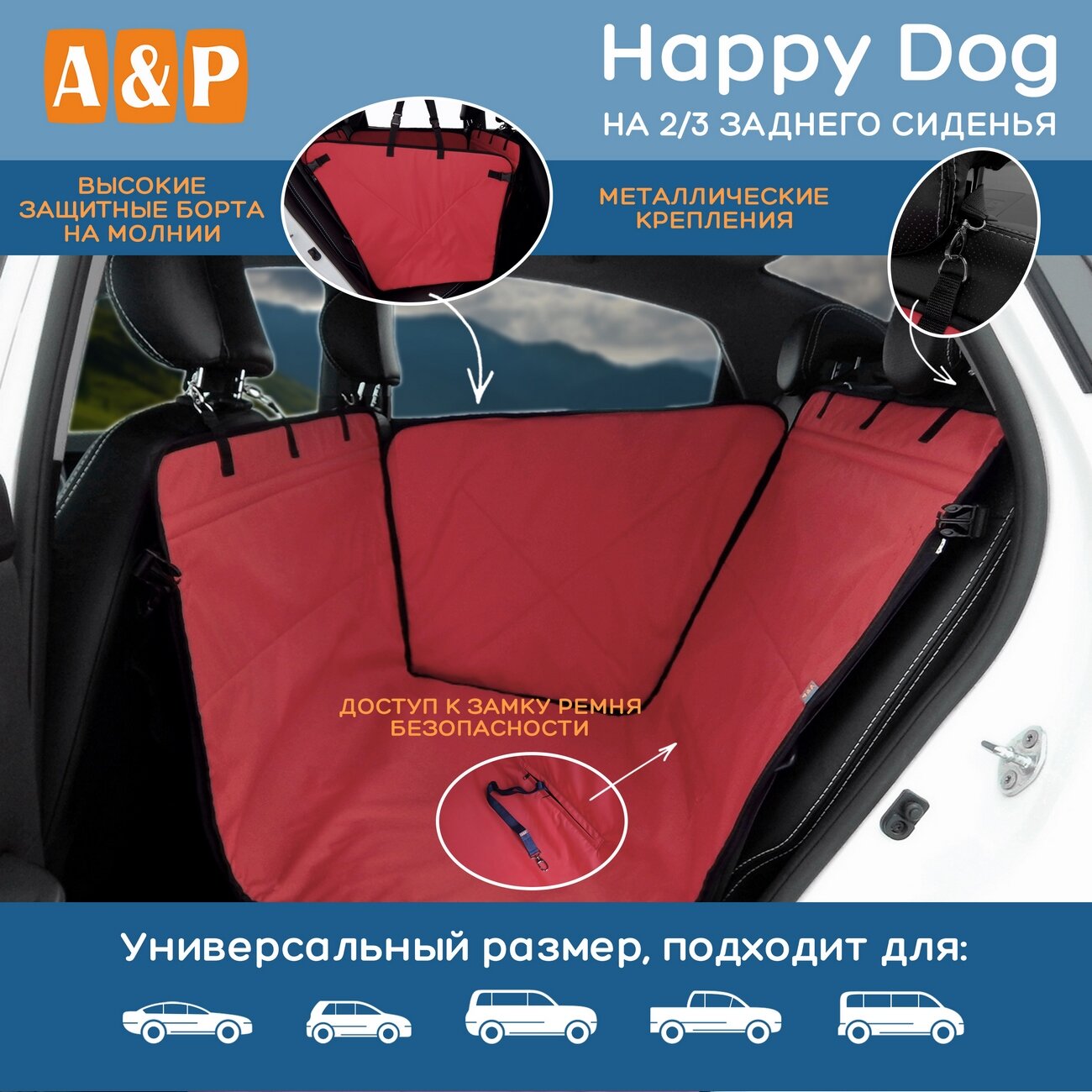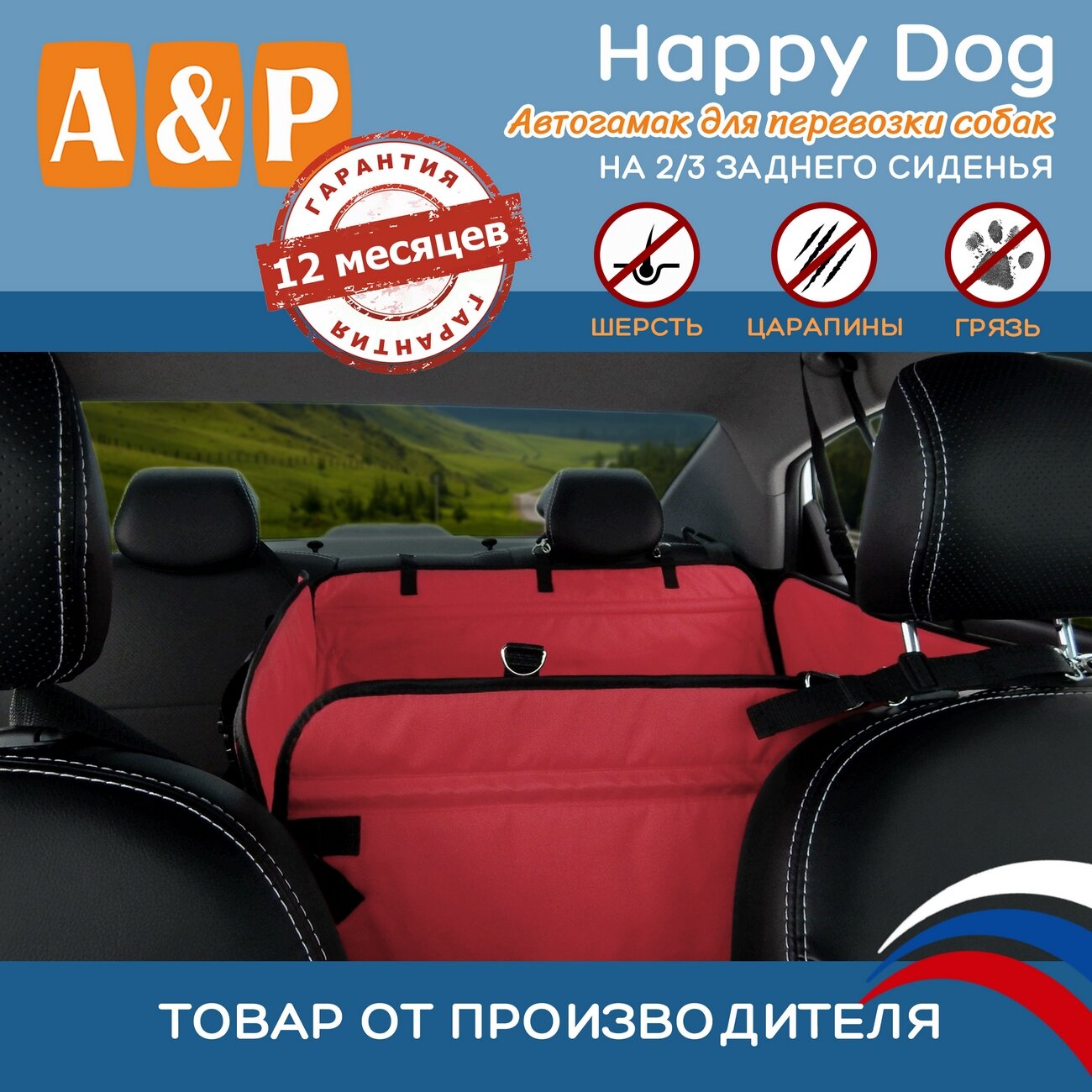 СохранитьАвтогамак Happy Dog (Хэппи Дог). На 2/3 заднего сиденья. Цвет: красный с черной окантовкой. интересное: