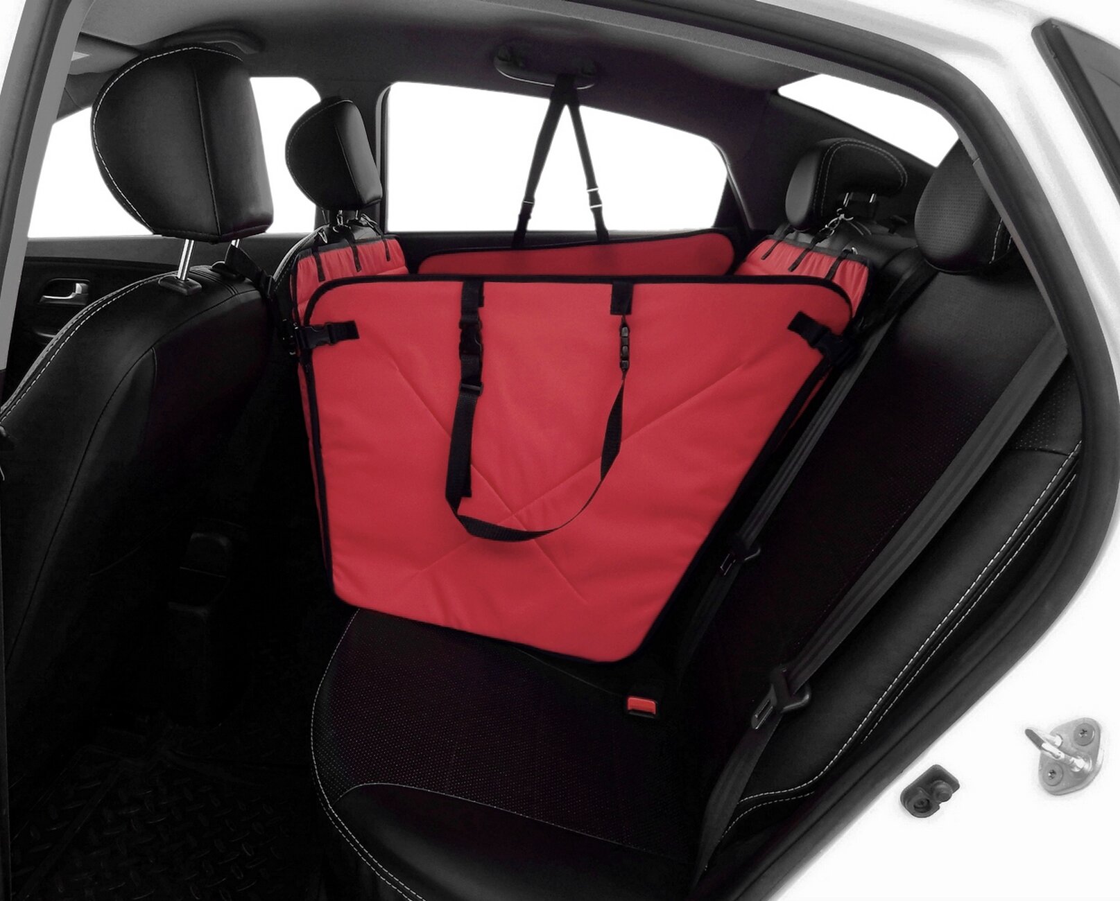 Автогамак для перевозки собак Happy Dog (Хэппи Дог). На 1/3 заднего сиденья. Цвет: красный с черной окантовкой.