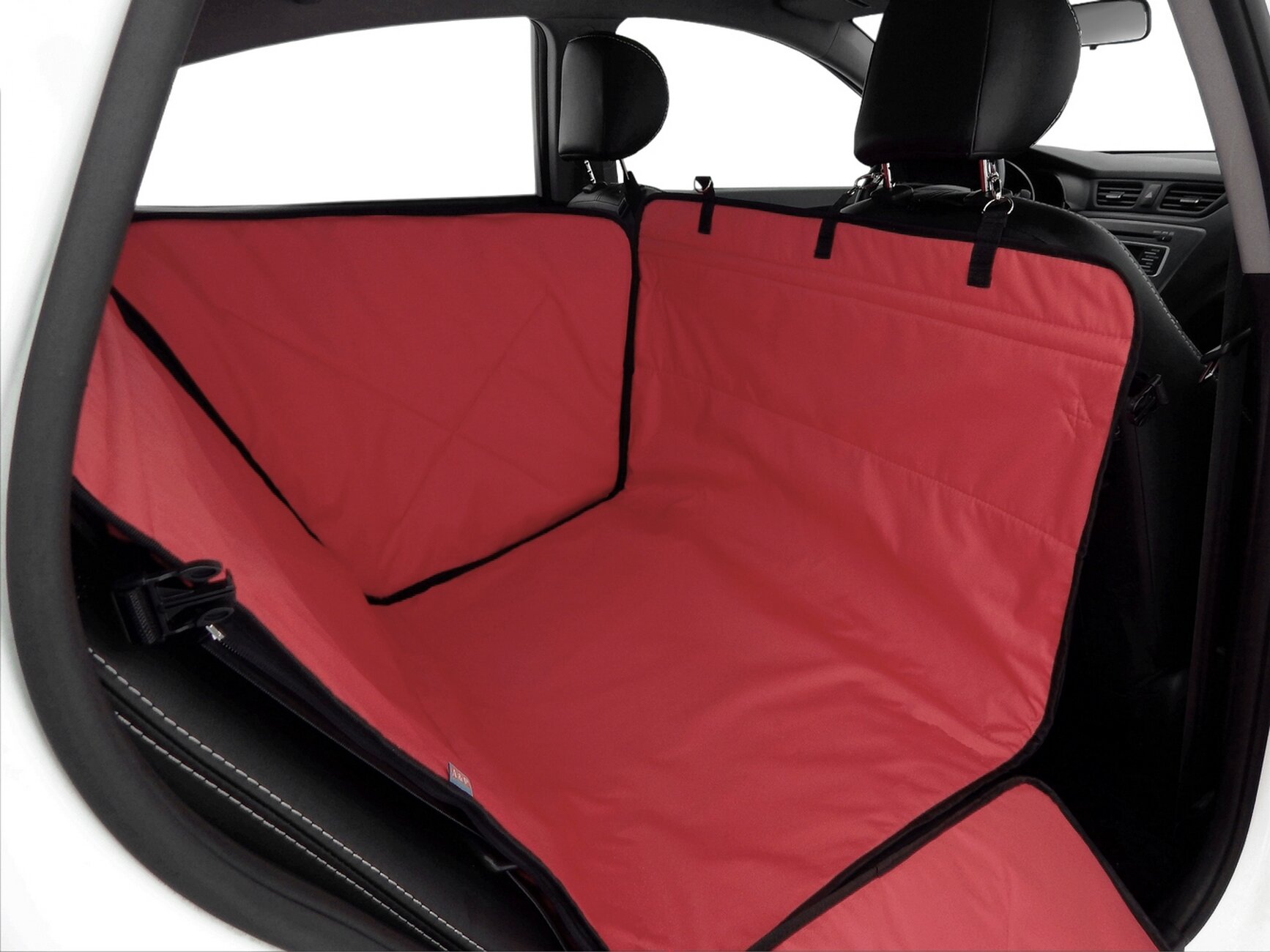 Автогамак Хэппи Дог. На 1/3 заднего сиденья. Цвет - красный с черной окантовкой.