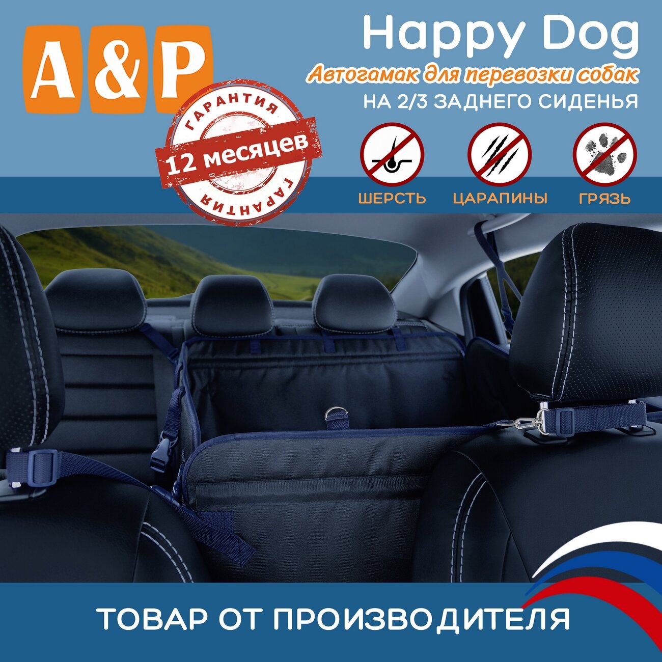 СохранитьАвтогамак Happy Dog (Хэппи Дог). На 2/3 заднего сиденья. Цвет: черный с синей окантовкой. интересное: