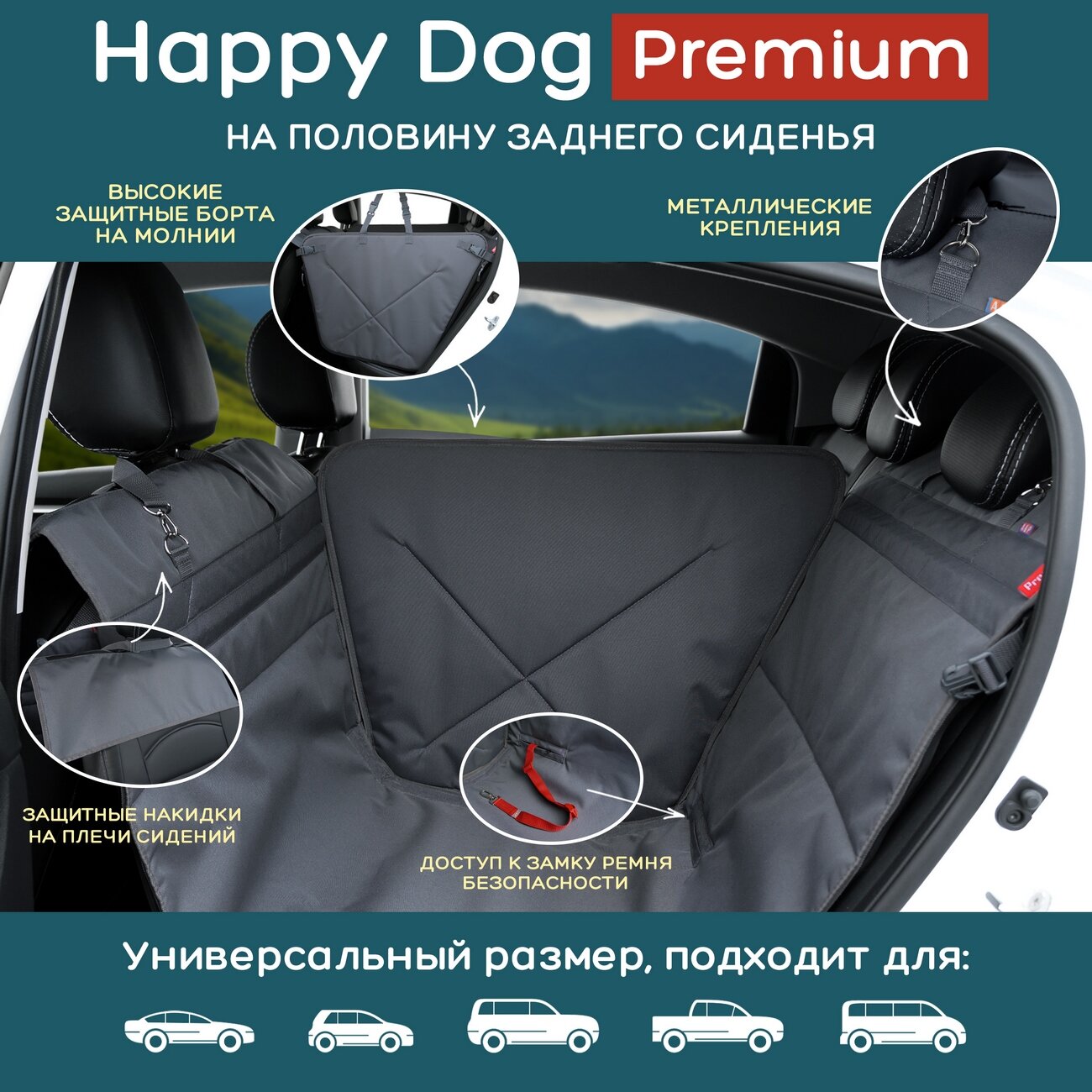 Автогамак Happy Dog Premium (Хэппи Дог Премиум). На 1/3 заднего сиденья. Цвет: черный.