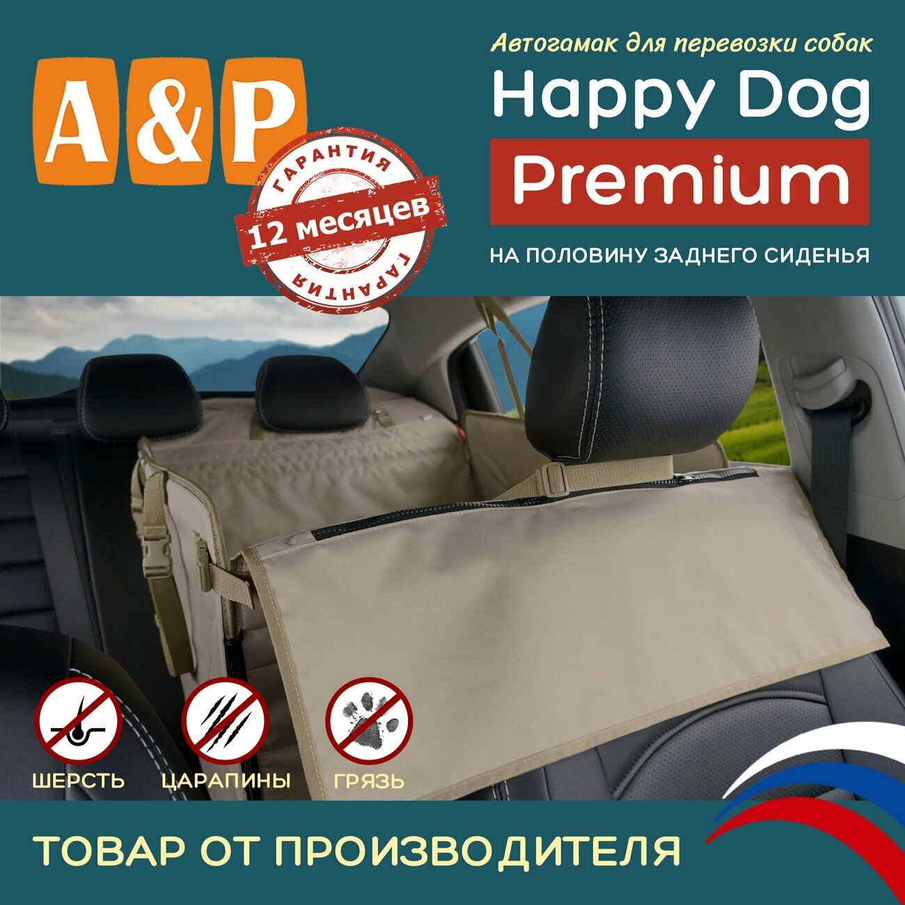 СохранитьАвтогамак Happy Dog Premium (Хэппи Дог Премиум). На половину сиденья. Цвет: бежевый. интересное: