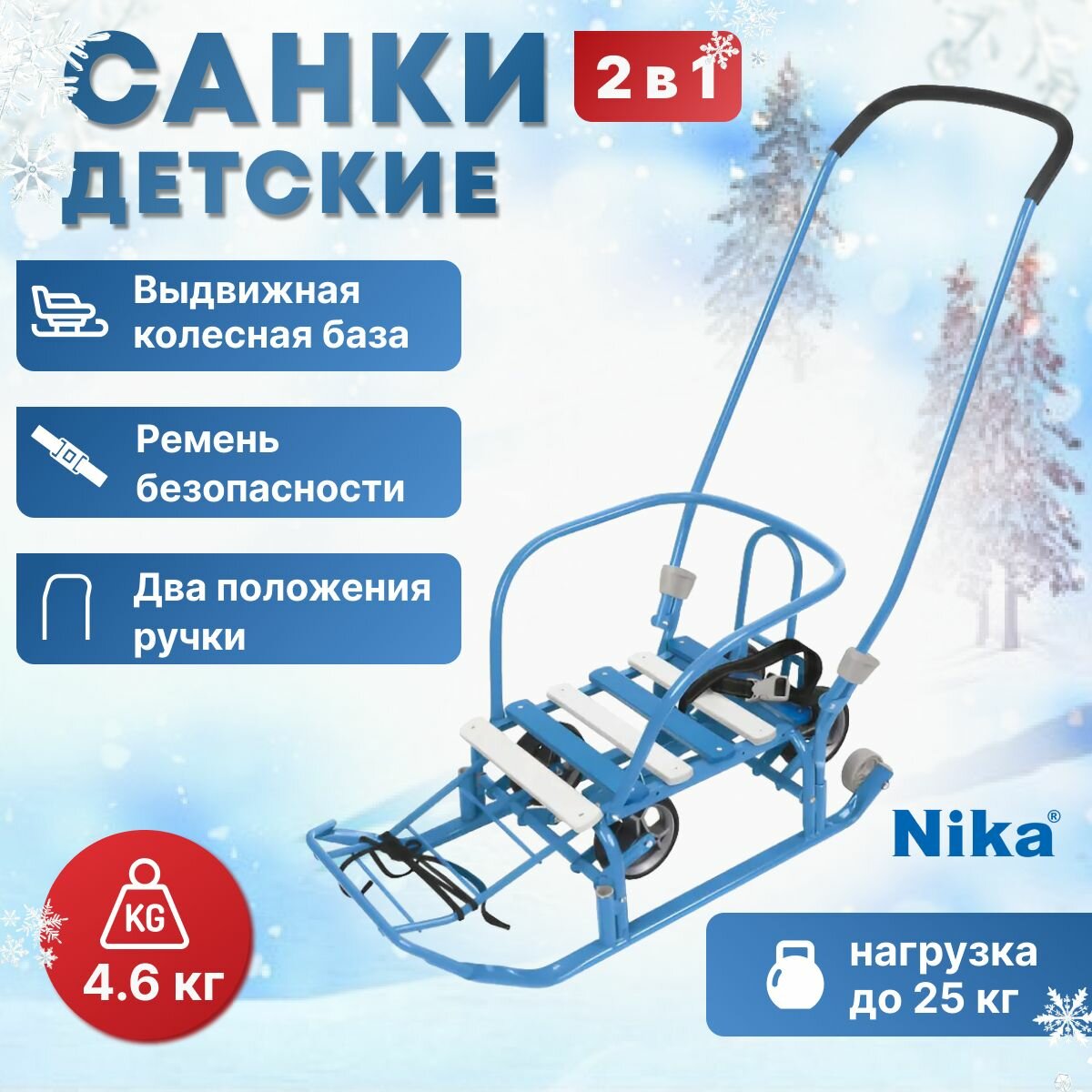Санки детские с колесной базой, ручкой и спинкой Nika "Тимка 3К универсал+" (голубой)