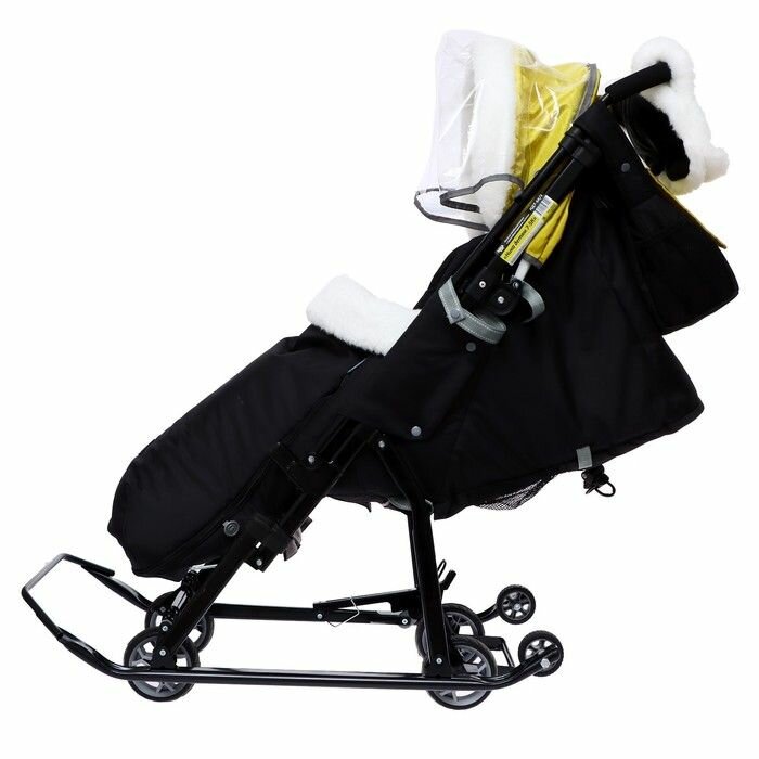 Санки-коляска Ника детям "7-5К", черный с золотым, складной козырек, ветрозащитный тент (НД7-5К/1)