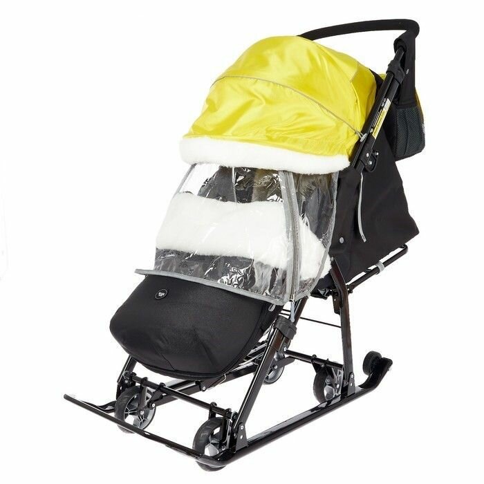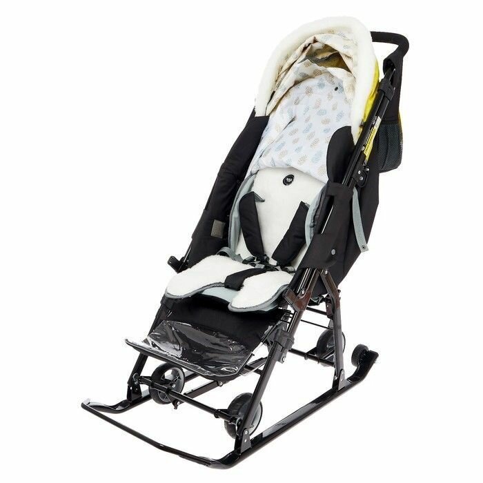 | Плюсы: | Лёгкость переключения с полозьев на колеса, прочная ткань, тепло ребёнку внутри, есть защитная плёнка от снега, ветра. |