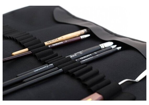 Малевичъ Пенал-скрутка для кистей на липучке, 340 х 480 мм, на 24 предмета, Малевичъ, чёрный 195006