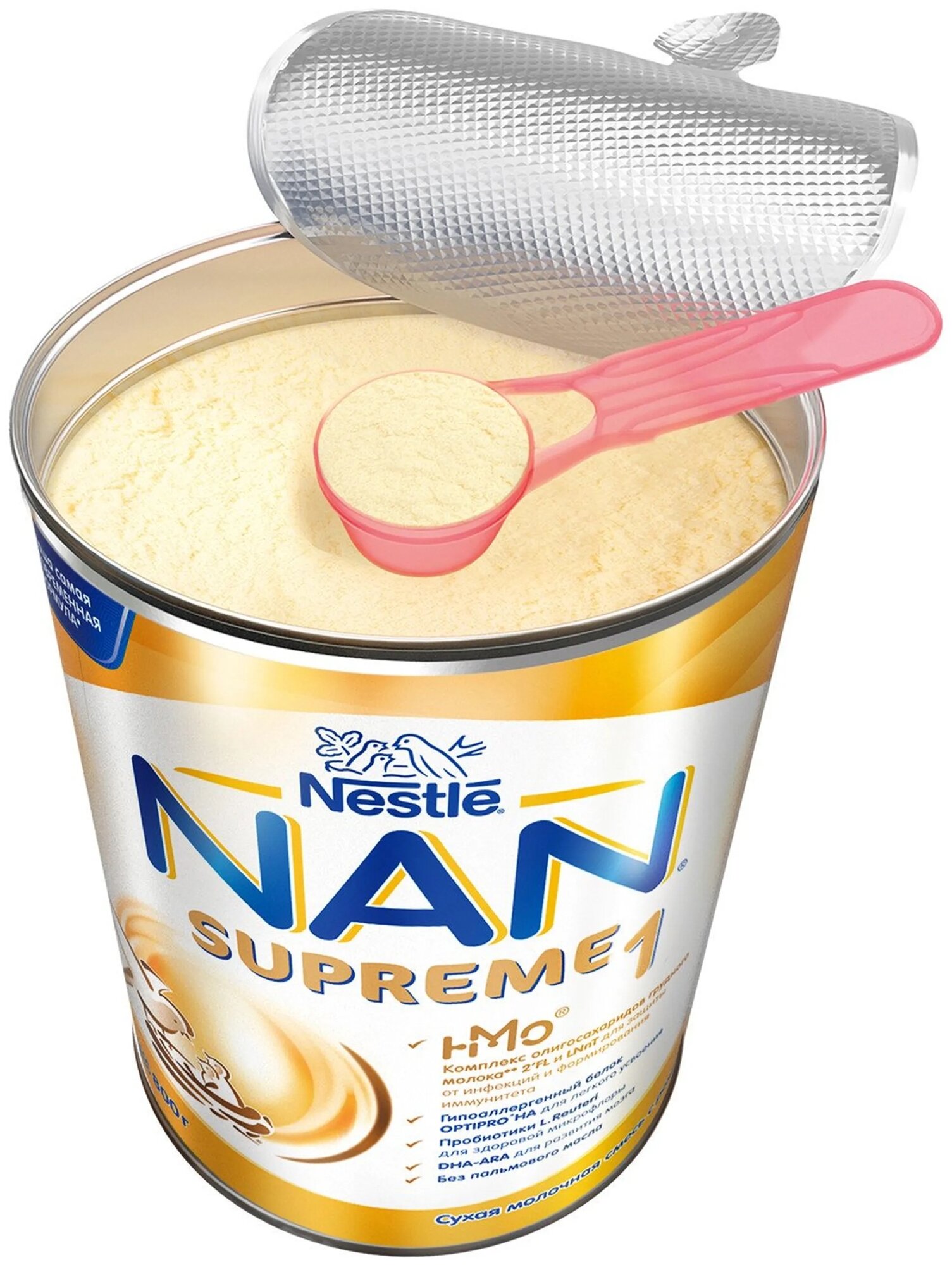 Смесь NAN Supreme. Cухая быстрорастворимая адаптированная молочная смесь с олигосахаридами на основе частично гидролизованного белка молочной сыворотки, 0-12 мес, 800 г интересное: