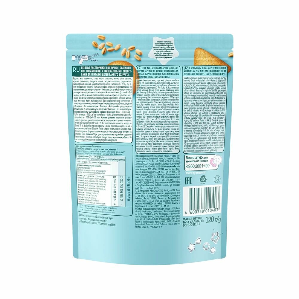 Печенье детское ФрутоНяня пшеничное с 6 месяцев 120 г 4 шт интересное: