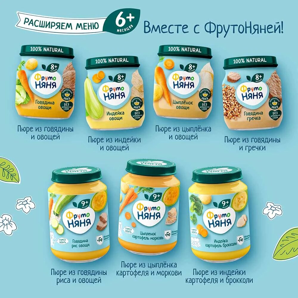 Пюре ФрутоНяня из говядины с овощами, с 8 месяцев, 100 г * 6 шт.