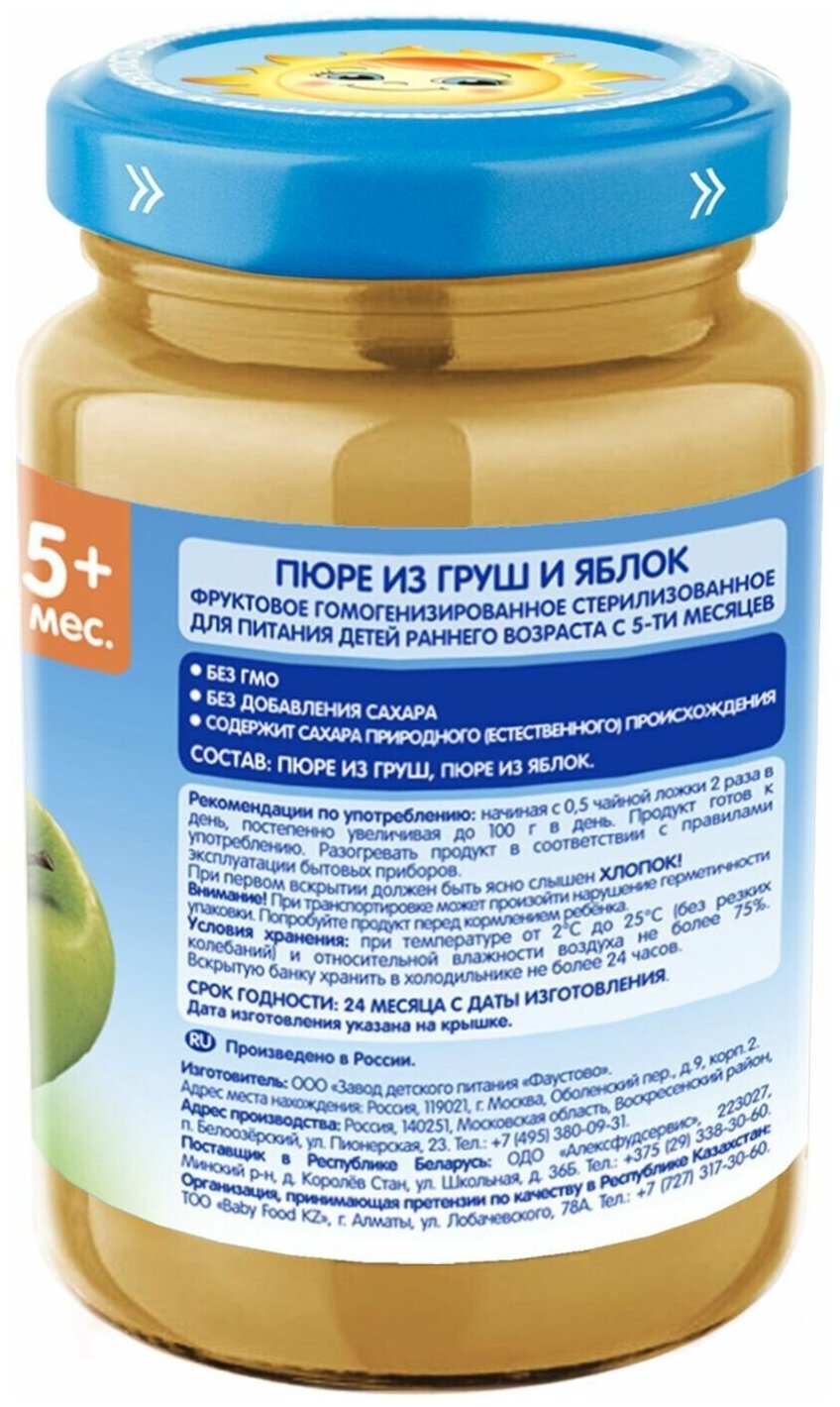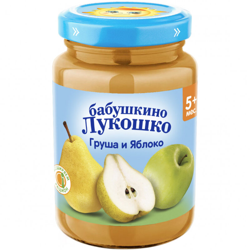 Пюре Бабушкино Лукошко груша-яблоко, с 5 месяцев, стеклянная банка, 100 г