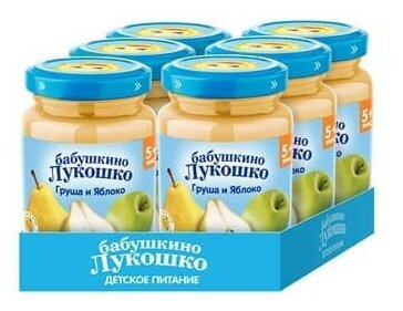 Купить Пюре Бабушкино Лукошко Груша и Яблоко с 5 мес 190 г (6 штук в упаковке)
