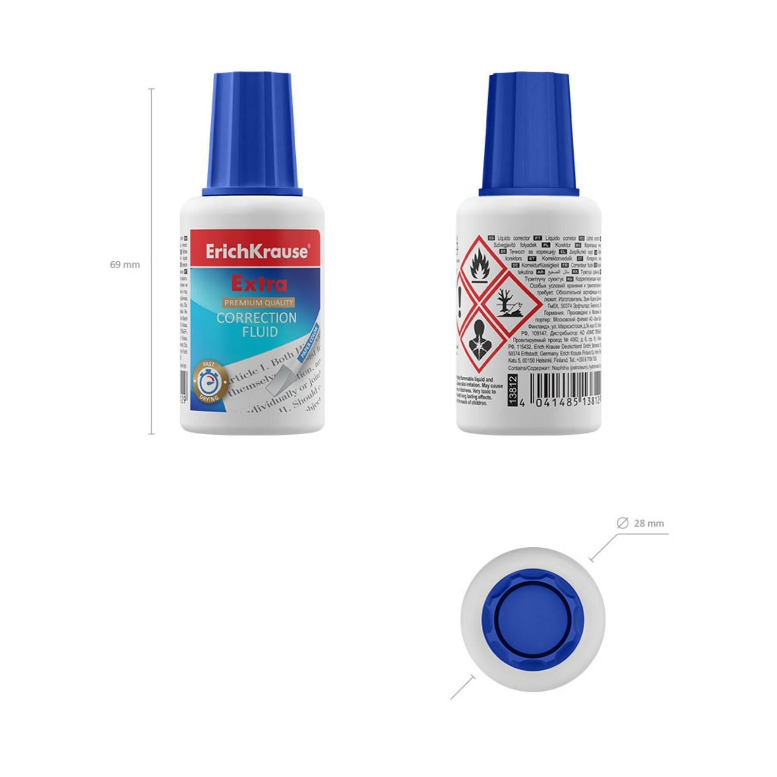 Корректирующая жидкость 20 мл, ErichKrause Extra, быстросохнущая, экономичный расход, на основе растворителя, с губкой