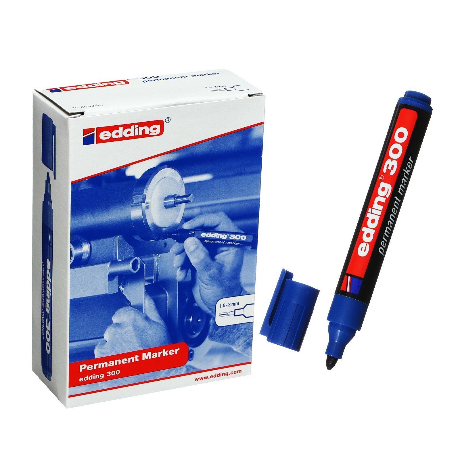 Маркер Маркер перманентный (нестираемый) EDDING "300", синий, круглый наконечник, 1,5-3 мм, E-300/3