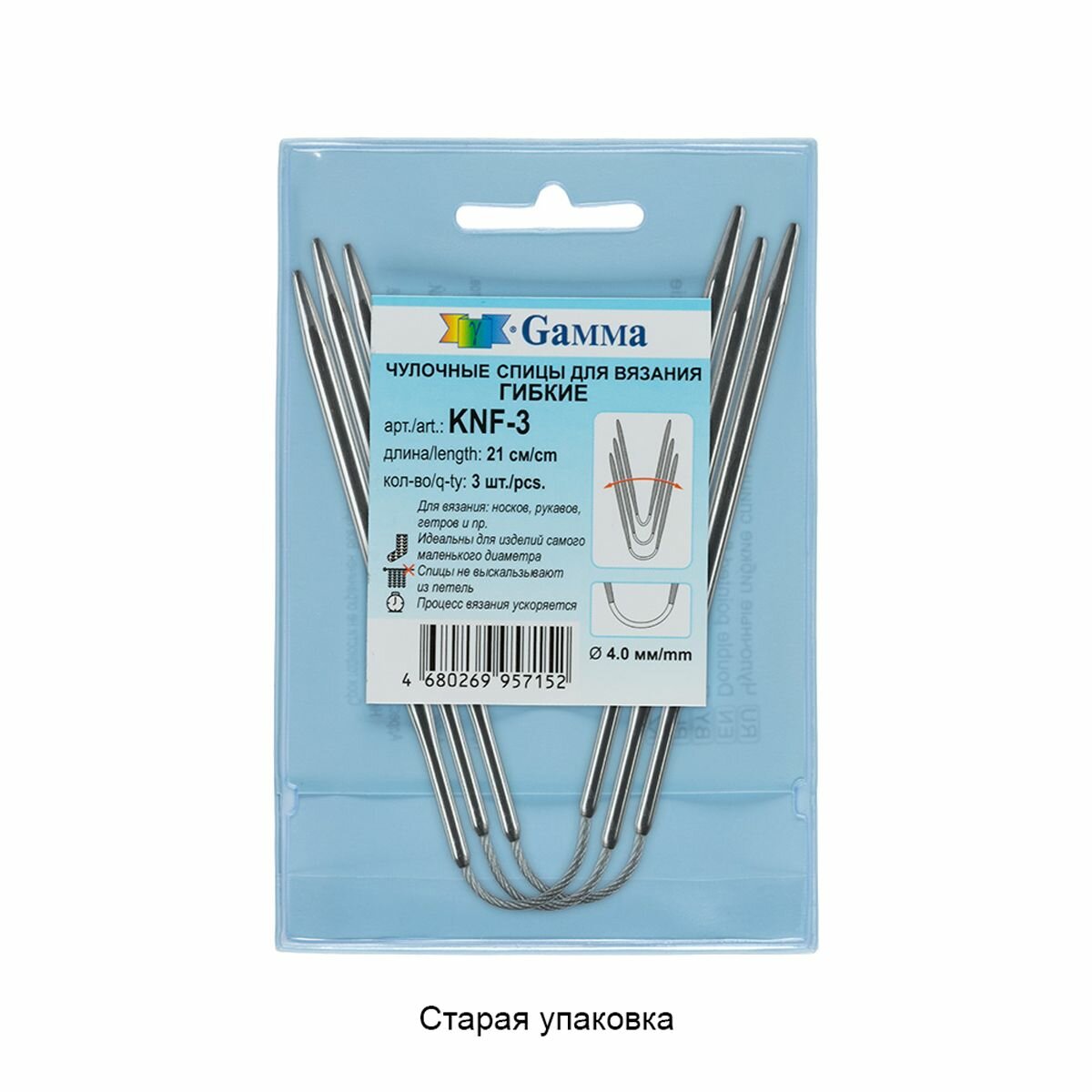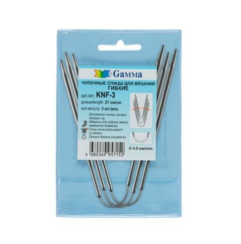 Купить Спицы чулочные гибкие, сталь GAMMA KNF-3 d 4.0 мм, 21 см, 3 шт под никель
