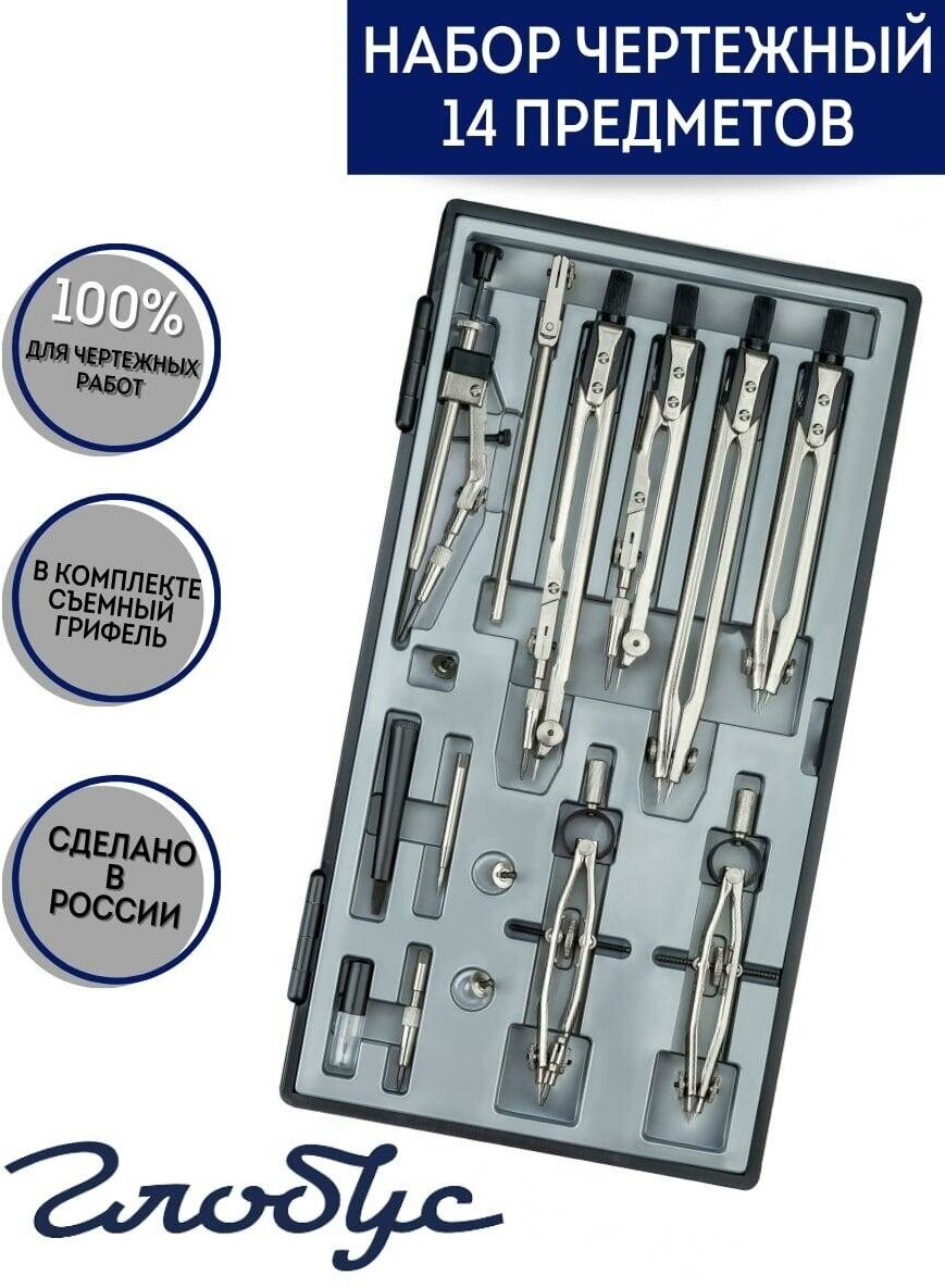 Готовальня 14 предметов Глобус "Техника" (НЧ14-Т-02/НЧ14-80-80)